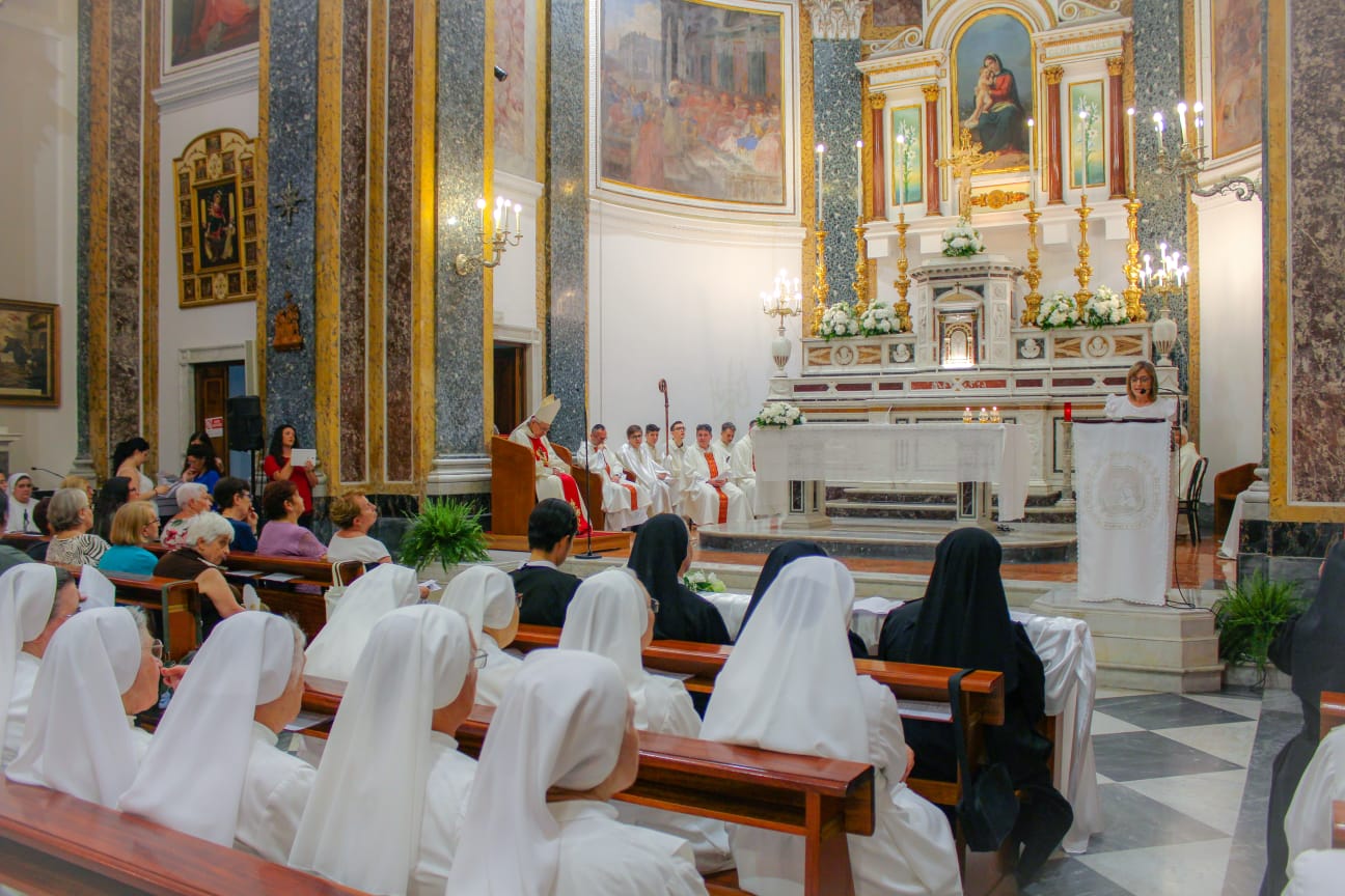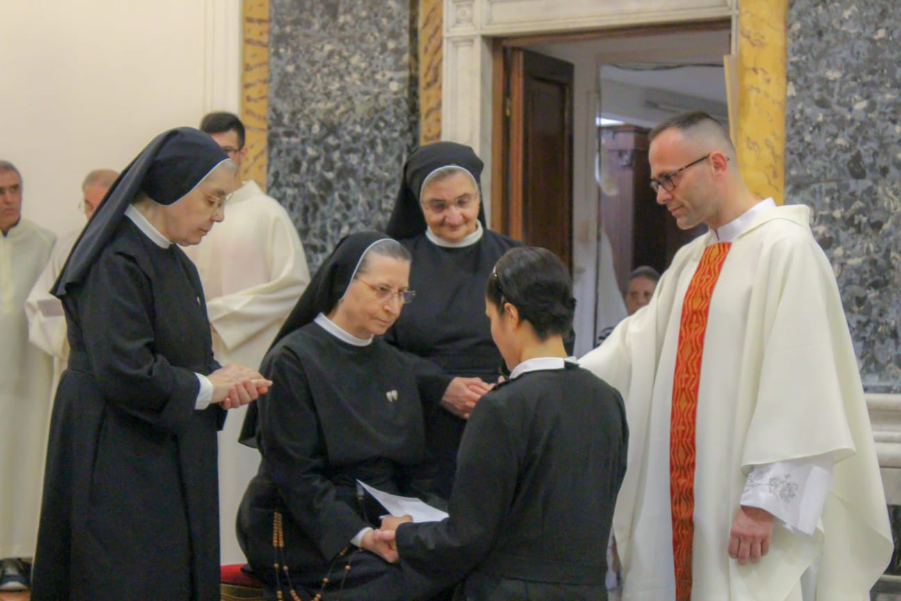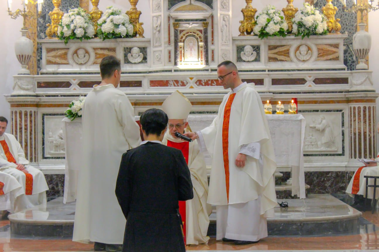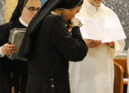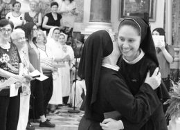 Ed eravamo in tanti ad esultare e gioire: la novizia Yessica Andrea Quilindo Leon che, dopo aver percorso le tappe iniziali della formazione religiosa, ha coraggiosamente espresso, davanti alla Chiesa, il suo Sì a Colui che l’ha chiamata a vivere alla sua sequela, nella famiglia delle Religiose dei Sacri Cuori di Gesù e Maria. Ha gioito la madre Generale, sr. Maricla Lapenta, insieme alle consorelle, venute in rappresentanza da tutte le fraternità, presenti in Italia; hanno esultato di gioia le consorelle della Casa Madre che hanno potuto rivivere così la gioia del loro primo sì a Dio, quel sì che continuano a ripetere anche nella fragilità e sofferenza dell’età avanzata.