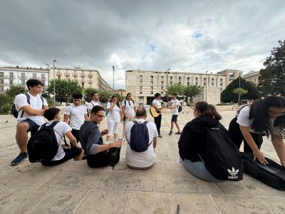 Questa mattina siamo stati accolti dalle Clarisse di Serino. Suor Emanuela ha condiviso con noi alcuni stralci della sua storia, offrendoci uno sguardo prezioso sulla sua vocazione e sul suo cammino. Abbiamo pranzato presso il Monte Terminio e, nel pomeriggio, ci siamo spostati nel centro di Avellino per rompere il ghiaccio e incontrare le persone: le abbiamo ascoltate, dialogato con loro e lasciato una domanda aperta da portare con sé – “Cos’è per te la speranza?” In serata siamo stati ospitati da Mons. Arturo Aiello. Abbiamo celebrato insieme l’Eucaristia e condiviso la cena in un clima di fraternità e accoglienza.