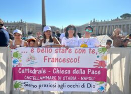 Sono le ore 4,00 di domenica 26 maggio l’alba è ancora lontana ma per le stradine del nostro centro antico,fino alla Cattedrale, si sente un  vociare allegro, quello di una insolita comitiva di bambini,corredati di zainetti,cappellini e bandierine,indossano tutti una maglietta con la sigla colorata,GMB 2024! Nonostante l’ora siamo tutti diretti a Roma,piazza San Pietro ,l’appuntamento è di quelli importanti uno di quelli che si  porta dentro per tutta la vita.  Ci aspetta Papa Francesco, ci  ha convocati proprio lui e il nostro parroco don Antonio De Simone ha fatto si che  la nostra comunità parrocchiale, Cattedrale  e Pace,potesse prontamente rispondere  all’invito. Abbiamo partecipato con un nutrito gruppo di bambini della catechesi e dell’oratorio accompagnati da genitori ,nonni, catechiste ed educatore nonchè dal nostro giovane sacerdote nonchè collaboratore parrocchiale ,don Alessandro Rosanova . Non è stato facile organizzare quest’uscita ma ne è valsa la pena,infatti, sin da subito è stata la gioia a fare da padrona e la voglia di mettersi in viaggio. Noi Cattepax abbiamo voluto fortemente uno striscione che ci rappresentasse, insieme alle magliette e ai cappellini e da confronti vari è nata l’idea di scrivere una frase che portasse il nostro messaggio al papa: ”E’ bello stare con te,Francesco”, che ci identificasse con il nome delle nostre Parrocchie,della nostra città  e che riportasse le parole del messaggio di questa prima GMB trasformandola un po’  in :”Siamo preziosi agli occhi di Dio”