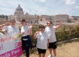 L’alba fa capolino e con essa la premessa di una giornata calda e soleggiata .Arrivati a Roma  ci siamo imbattuti in una piazza san Pietro stranamente  vuota ma che in un attimo si è riempita  di un immensità di colori ,di grida ,urla e canti in tantissime lingue tutte con la voce dei bambini. Era un vociare allegro,tutti eravamo pronti in trepida attesa in ognuno di noi c’è il grande sogno  di farsi vedere dal santo Padre ,di carpire un suo sorriso,di incrociare i suoi occhi,di fare lo scatto fotografico della vita .Percio’ abbiamo cercato il posto giusto ma tutti i posti sono buoni e cosi’ ci siamo seduti in attesa del suo arrivo .Abbiamo ascoltato le testimonianze di alcuni  giovani provenienti da paesi in guerra e con loro abbiamo pregato per  la speranza di un mondo migliore… Ore 10.30 papa Francesco arriva puntualissimo ed inizia la S.Messa nella Solennità della S.S.Trinità . L’omelia  è un tripudio  di didattica inclusiva,il papa ha rinunciato al solito format per intavolare una conversazione con il linguaggio adatto ai bambini,una scelta vincente che ha visto un botta e risposta con i piccoli ed il messaggio è passato. Papa Francesco ci ha insegnato che” il Padre ci ha creato,il Figlio ci ha salvato  e lo Spirito Santo ci accompagna tutti i giorni” ha poi concluso dicendo che Dio perdona sempre e con la semplicità di un nonno ha invitato tutti a pregare la Madonna con l’Ave Maria!