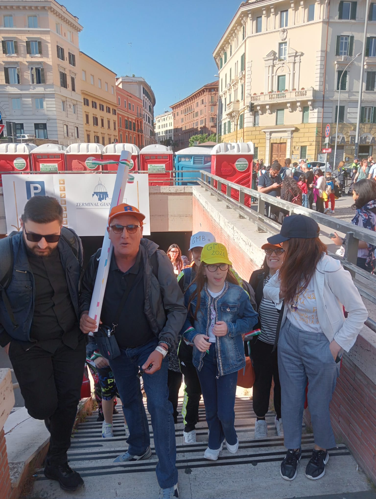 L’alba fa capolino e con essa la premessa di una giornata calda e soleggiata .Arrivati a Roma  ci siamo imbattuti in una piazza san Pietro stranamente  vuota ma che in un attimo si è riempita  di un immensità di colori ,di grida ,urla e canti in tantissime lingue tutte con la voce dei bambini. Era un vociare allegro,tutti eravamo pronti in trepida attesa in ognuno di noi c’è il grande sogno  di farsi vedere dal santo Padre ,di carpire un suo sorriso,di incrociare i suoi occhi,di fare lo scatto fotografico della vita .Percio’ abbiamo cercato il posto giusto ma tutti i posti sono buoni e cosi’ ci siamo seduti in attesa del suo arrivo .Abbiamo ascoltato le testimonianze di alcuni  giovani provenienti da paesi in guerra e con loro abbiamo pregato per  la speranza di un mondo migliore… Ore 10.30 papa Francesco arriva puntualissimo ed inizia la S.Messa nella Solennità della S.S.Trinità . L’omelia  è un tripudio  di didattica inclusiva,il papa ha rinunciato al solito format per intavolare una conversazione con il linguaggio adatto ai bambini,una scelta vincente che ha visto un botta e risposta con i piccoli ed il messaggio è passato. Papa Francesco ci ha insegnato che” il Padre ci ha creato,il Figlio ci ha salvato  e lo Spirito Santo ci accompagna tutti i giorni” ha poi concluso dicendo che Dio perdona sempre e con la semplicità di un nonno ha invitato tutti a pregare la Madonna con l’Ave Maria!