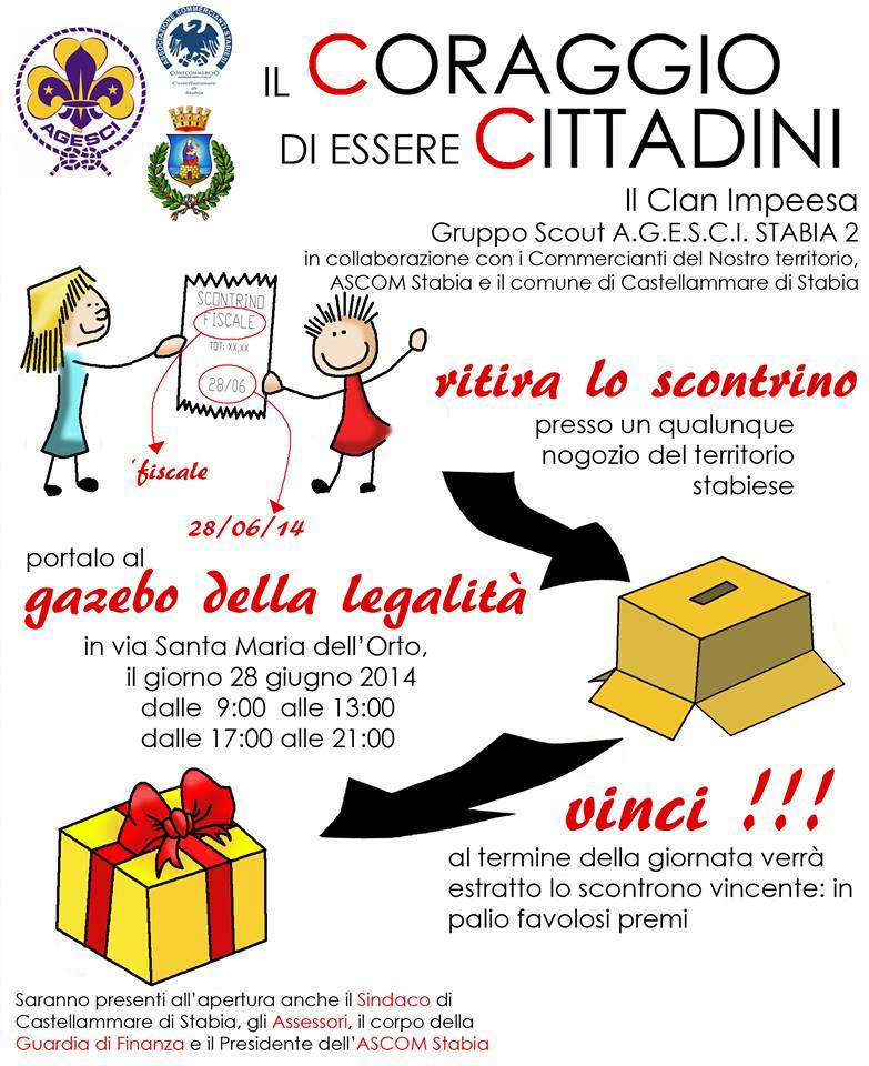 Per questo, il Gruppo Scout Agesci Stabia 2 sabato allestirà il Gazebo della legalità, in via Santa Maria dellOrto, dalle ore 9 alle ore 13 e dalle ore 17 alle ore 21. Allapertura del Gazebo saranno presenti il sindaco di Castellammare, Nicola Cuomo, gli assessori, il corpo della Guardia di Finanza e il presidente dellAscom Stabia.