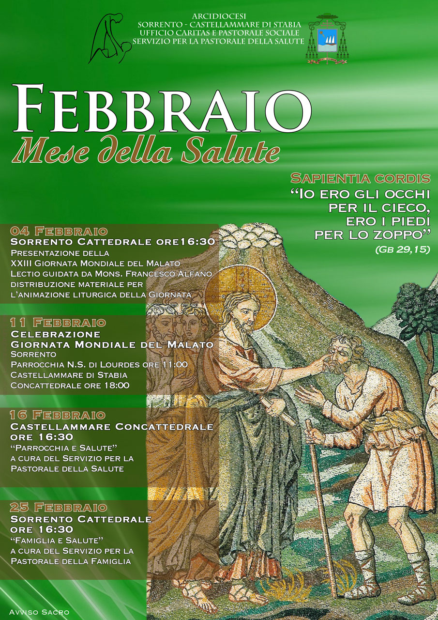 È stata loccasione per prepararci alla Giornata mondiale della Salute, che si celebra ogni anno l11 febbraio, e ci ha anche dato lo spunto per avviare una riflessione condivisa su salute e malattia, tematica dai forti risvolti antropologici e pastorali: la salute e la malattia vanno ricondotti alla verità sulluomo, creatura che sperimenta nella fragilità del dolore il suo bisogno di relazioni buone.