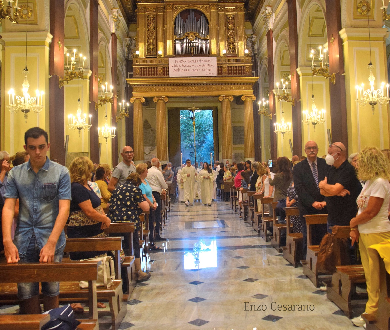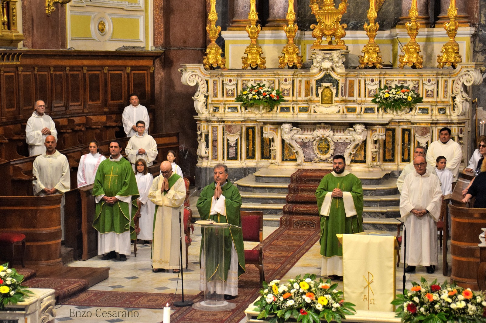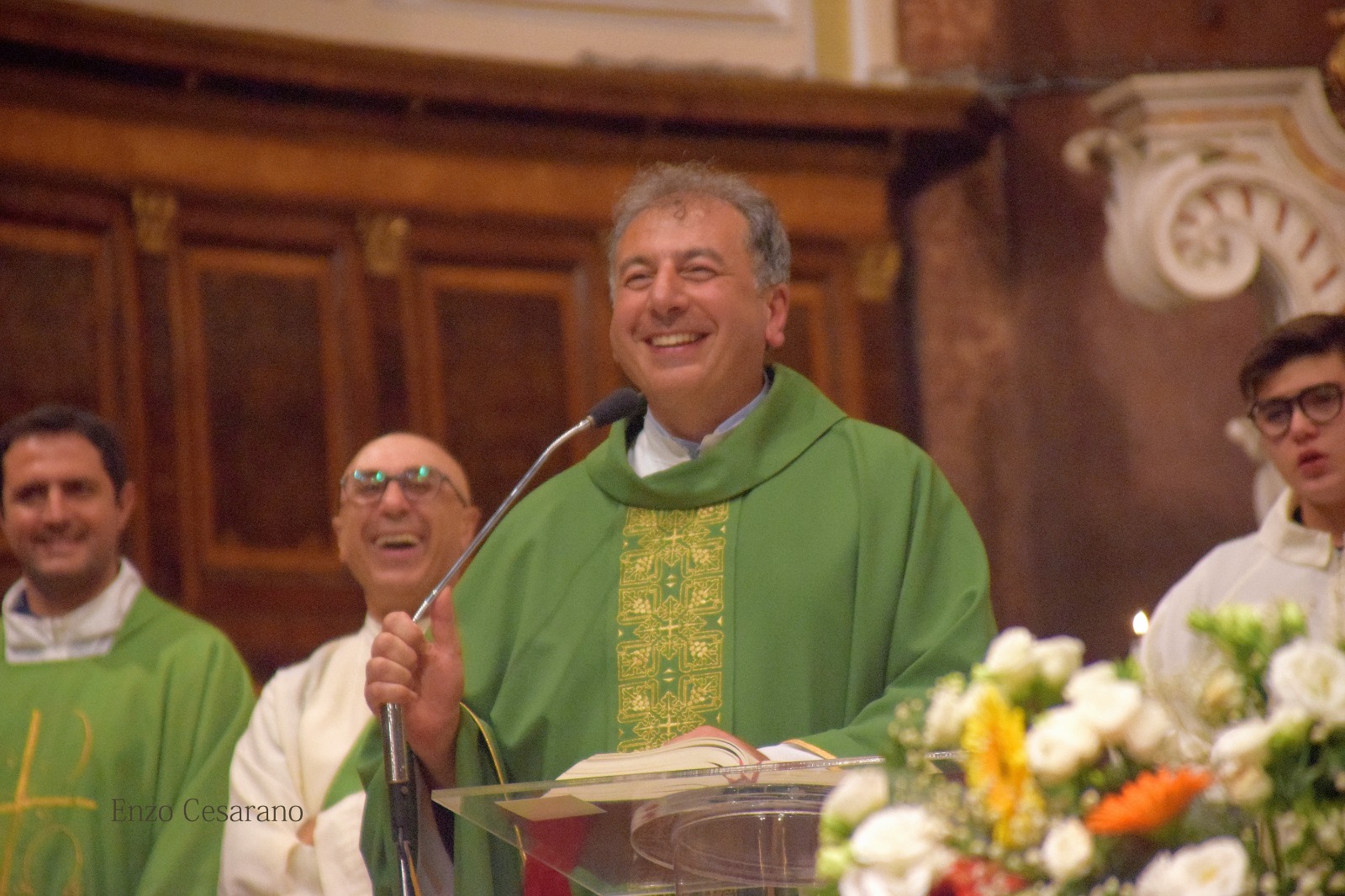 “Ho un elenco di ringraziamenti e pronunciarli qui sarebbe troppo lungo, perciò ringrazio tutti e pronuncerò solo un nome quello del mio Sagrista Antonio Di Maio che in questi anni è stato sempre presente in maniera silenziosa ma attiva. Non posso pronunciare i nomi di tutti voi anche se lo vorrei ,anche perché questo mio andare di domani non è un lasciare soltanto la Parrocchia è un congedo da Castellammare in cui sto da 21 anni (e qui si è fermato perché la commozione ha preso il sopravvento) ,quindi è un passaggio e un saluto anche dalla mia vita stabiese e se mi guardo indietro vedo la mia vita qui fra voi ricca d’esempi, perché non è soltanto il Pastore che guida il gregge ma è anche il gregge che fa il pastore. Io vorrei dirvi tante cose ,ho imparato molto ,sia da voi che dalle altre due precedenti Parrocchie “San Matteo” e Scanzano, dal vostro modo di vivere senza secondi fini e veramente posso dirvi di avere imparato tanto e porto tutte le persone che ho incontrato nel mio cuore perché mi avete fatto ricco. Ringrazio don Catellino per le meravigliose parole pronunciate per me e il mio ministero qui in parrocchia ,lui è un dispensatore di Misericordia in mezzo a noi.”