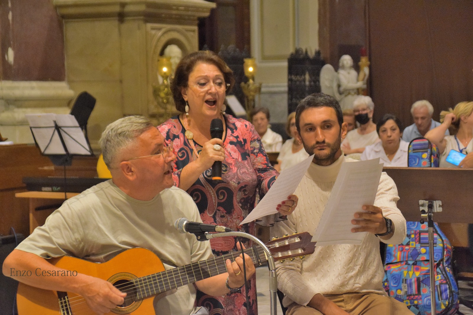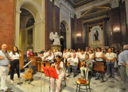 A concerto concluso abbiamo presentato alcuni doni per don Antonino:una Guache antica dov’è ritratto San Catello e sullo sfondo un immagine della nostra Parrocchia con Faito alle spalle, un fotolibro dal titolo :”Servo per Amore” che in piccola parte ricorda la sua presenza fra noi e una Natività in una scarabattola del 1800 del maestro A.Molli e per tutti gli interventuti abbiamo realizzato una cartolina ricordo della serata con una frase presa da una canzone di Fiorella Mannoia “In viaggio ”.