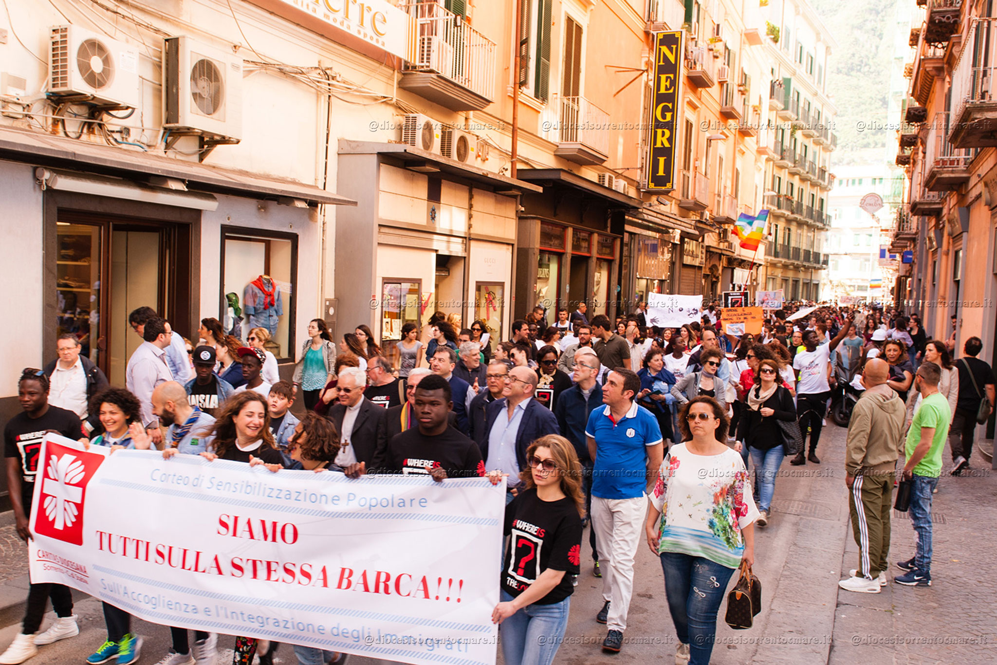 La diocesi è in cammino da tempo sensibilizzando tutte le comunità parrocchiali commenta Mons. Alfano Il tutto con opere segno per accogliere, abbracciare e soprattutto integrare queste persone che bussano alla porta delle nostre paese. Il corteo si situa davvero nel cuore del nostro cammino perché coinvolge gli studenti e il lungo cammino che la Caritas ha fatto oggi li porta a dire che possiamo camminare insieme oltre ogni steccato.