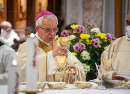 “Carissimi fratelli e sorelle, nella seconda lettura abbiamo ascoltato un passo della seconda lettera ai Corinzi che scelsi ben quaranta anni fa per la liturgia della mia ordinazione presbiterale. Vi esorto a fare vostre le parole che scelsi allora per l’immaginetta-ricordo e che possono ora racchiudere tutto il nostro programma di vita, fino a quando Dio vorrà: Noi non annunciamo noi stessi, ma Cristo Gesù Signore; quanto a noi, siamo i vostri servitori a causa di Gesù” – conclude.