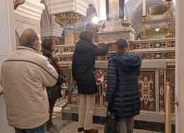 Secondo e ultimo momento dell’incontro è stata la visita guidata della Basilica, testimonianza artistica e culturale della fede e della devozione dei sorrentini, ma soprattutto segno della presenza paterna di Dio riservata a tutti noi, particolarmente da 1400 anni per intercessione di S. Antonino, il quale per non lasciare soli i suoi fratelli chiese di essere sepolto: “né dentro, né fuori la città”!