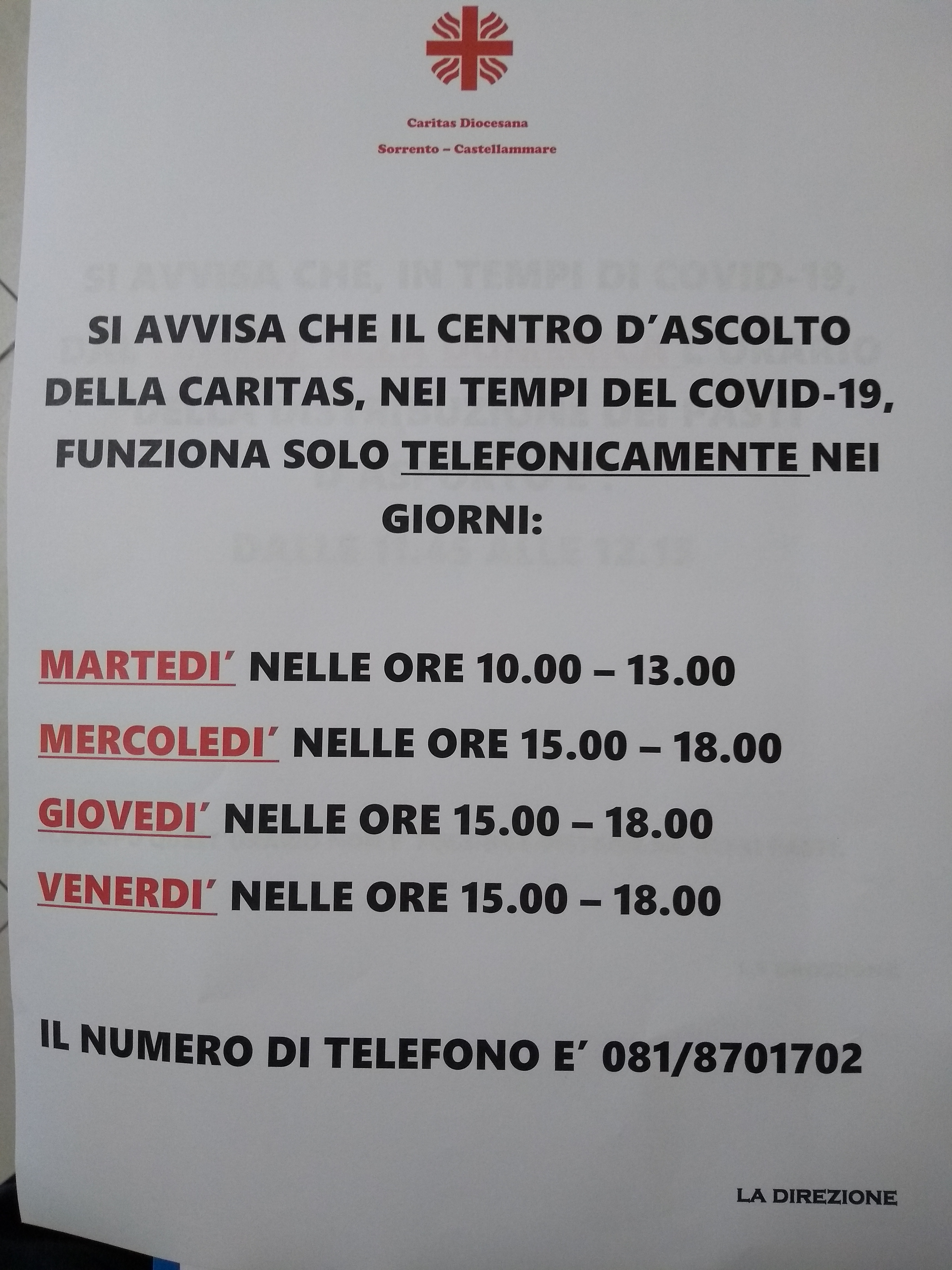 Le Caritas sono abituate alle varie emergenze della vita quotidiana ma questo periodo di grave e impensabile emergenza ha messo a dura prova tutte le Caritas Parrocchiali e in modo particolare la Caritas Diocesana: esperienza di riferimento di tante Parrocchie, di moltissime situazioni di persone  povere e disperate,  di tante famiglie del Centro Storico di Castellammare, di diversi detenuti con le pene alternative, dei senza fissa dimora e di chi oggi si ritrova senza lavoro o con altre gravi fragilità familiari (violenze domestiche o presenza di persone con Handicap).
