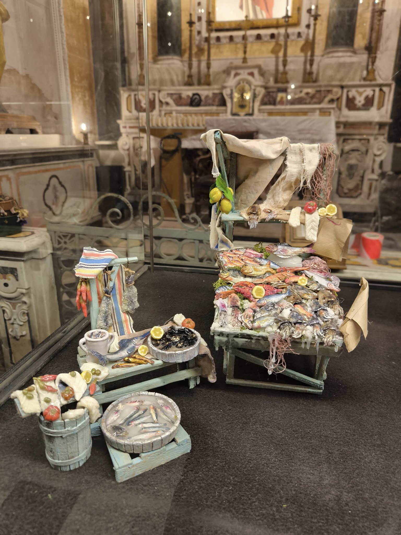 Gli artisti esprimono – ciascuno a suo modo – la propria essenza. Ogni opera d’arte è caratterizzata da dettagli minuziosi, sono loro a fare la differenza. L’arte nelle mani e la passione nel cuore. Mobili d’epoca, meravigliosi incensieri, natività con adorazioni dei pastori. E ancora, l’immancabile banco del pescivendolo, coppie di asini, presepi in miniatura, presepi che somigliano a carillon, i doni dei re magi. Non mancano i ricordi, anche quelli personali, verso chi oggi non è più con noi.