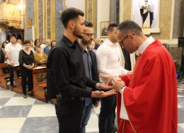 La solennità di Pentecoste ha arricchito la nostra comunità parrocchiale di due neofiti: Luca e Domenico. Abbiamo conosciuto bene i due giovani durante il tempo della loro preparazione, ci incantavano con la loro gioiosa testimonianza. Osservarli durante i momenti di preghiera comunitari commuoveva, perché se ne coglieva l’entusiasmo, segno del loro desiderio di entrare a far parte della Chiesa.