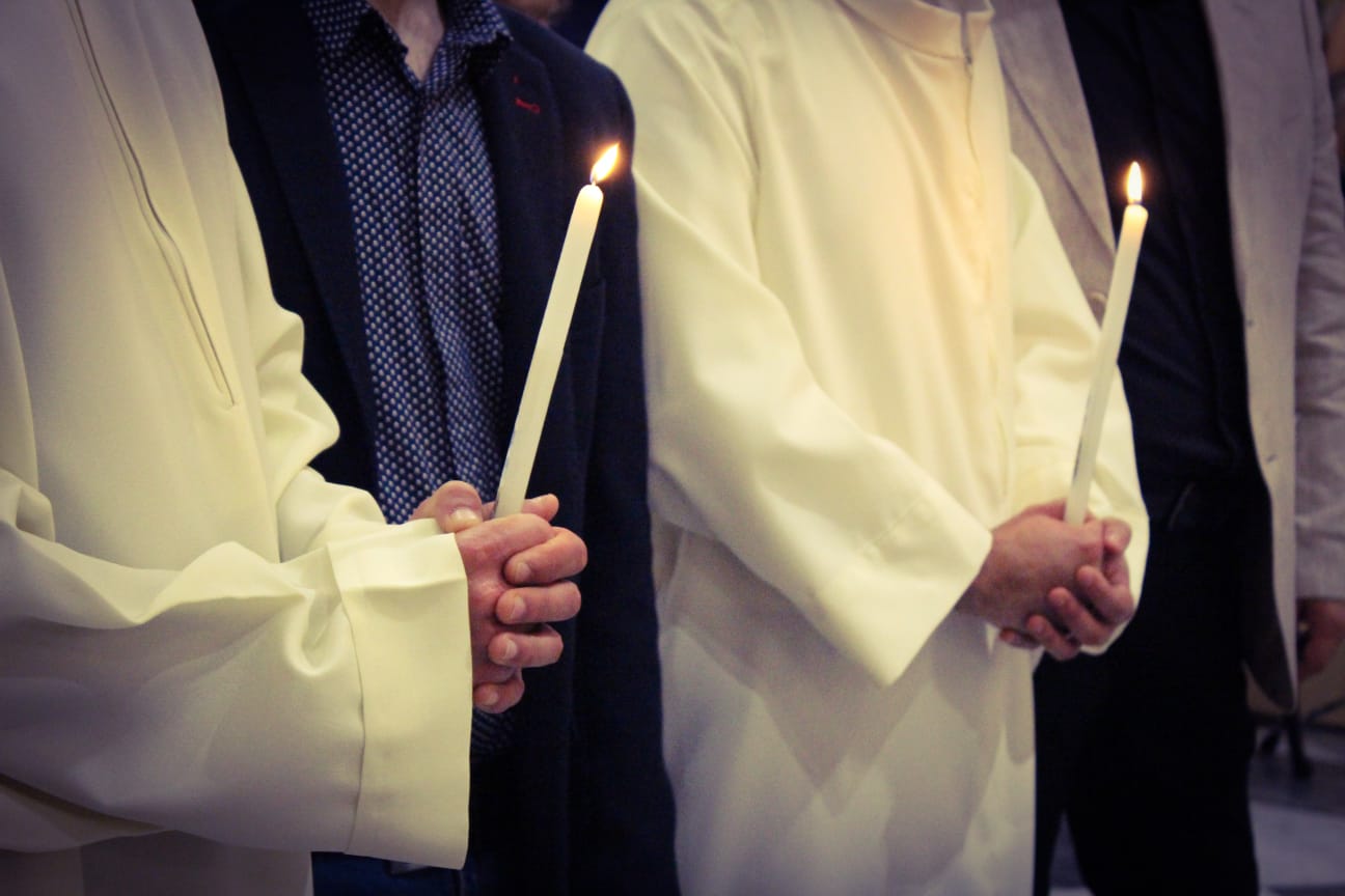 Al termine dell’omelia sono cominciati i riti dei sacramenti: i due Eletti sono stati unti e battezzati, rivestiti della veste bianca e poi confermati con il sigillo dello Spirito. Finalmente potevano partecipare alla mensa eucaristica!