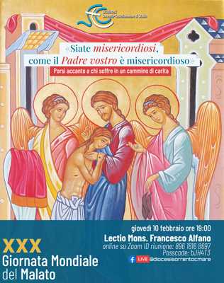 Papa Francesco, nel suo messaggio per questa trentesima giornata del malato, ci ricorda che molta strada rimane ancora da percorrere per assicurare a tutti I malati, anche nei luoghi e nelle situazioni di maggiore povertà ed emarginazione, “le cure sanitarie di cui hanno bisogno, come pure l’accompagnamento pastorale, perché possano vivere il tempo della malattia uniti a Cristo, crocifisso e risorto”. E ci invita alla misericordia pastorale: invito forte a non trascurare la cura spirituale dei poveri, e I malati, ci dice, sono poveri di salute, ricordando che è un invito che Cristo rivolge a tutti: il ministero della Consolazione è compito di ogni battezzato, memore della parola di Gesù ”Ero malato e mi avete visitato”. Invito rivolto anche alle comunità parrocchiali, a tenere al centro del loro agire pastorale I fragili, ma anche a tenere viva l’attenzione sulla salute, bene comune, come l’aria, l’acqua, la terra, e come tale da educare, e difendere da egoismi e privilegi, e discriminazioni sociali. La salute è un diritto e un dovere, ed è compito di ognuno essere custodi della salute, la propria e quella del fratello. Salute intesa nella sua complessità, di armonia tra le parti dell’essere: fisica, psichica, affettiva, relazionale e spirituale. In ognuna di queste parti può esserci salute o malattia: a tutti noi, anche a chi non ha fatto esperienza diretta del coronavirus, la pandemia ha tolto qualcosa, impedendo quella sana espressività relazionale che ci faceva coltivare la gioia di vivere, fonte di salute. Sono sotto I nostri occhi I più giovani nevrotizzati dalle tante ore chiusi in casa, le famiglie stressate da convivenze non facili, gli anziani impediti nei loro piccoli gesti di autonomia, un giro nel quartiere, la parrocchia come riferimento… Misericordiosi come il Padre, è l’invito ad avere lo sguardo sanante di Cristo sulle fragilità dei nostri fratelli.
