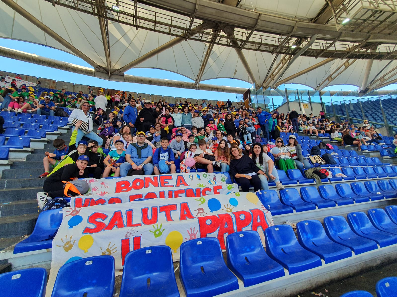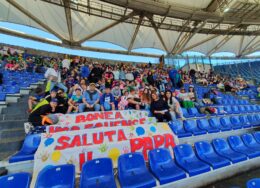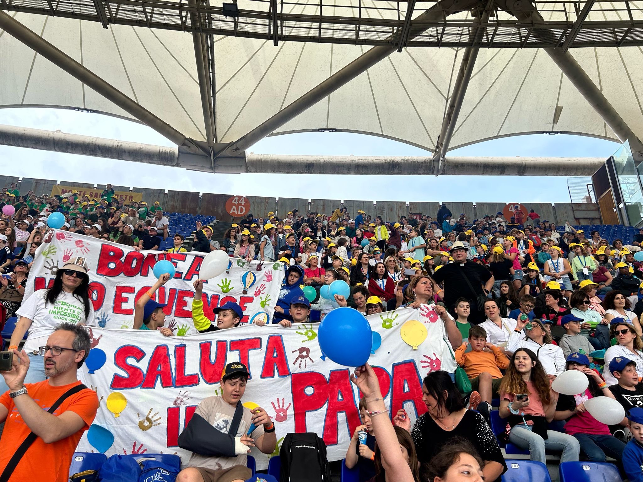 Sugli spalti dell’ Olimpico tanti sorrisi più luminosi del sole e tanta, tanta gioia. Si sono susseguiti interventi riflessivi come quello dei bambini palestinesi a quelli dei tanti artisti ma l’apoteosi è stata il momento in cui è arrivato papa Francesco, anche lui travolto dell’onda gioiosa dei bambini. Ognuno di noi ha portato a casa il suo ricordo indelebile che resterà per sempre nei nostri cuori ma di certo abbiamo fatto una bella scorta di gioia da poterla portare e donare a chi è rimasto a casa.