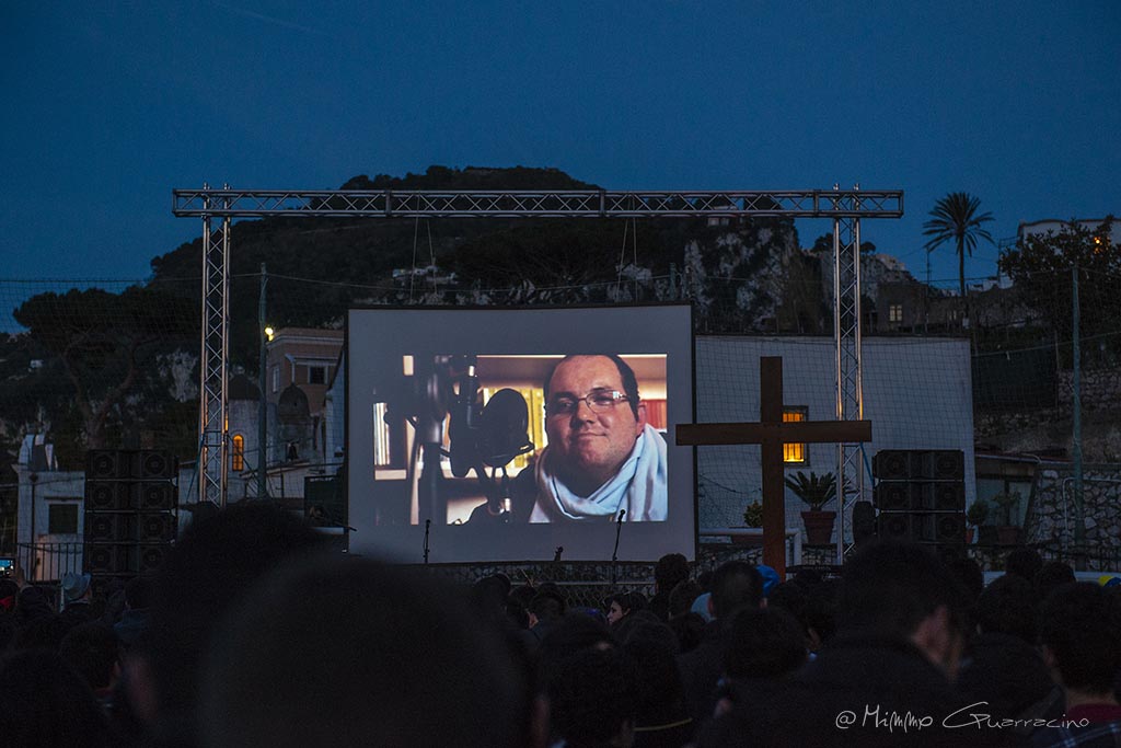 E ancora la voce di un giovane: Sabato io e i miei amici della parrocchia abbiamo partecipato alla Pasqua dei giovani che si è tenuta a Capri. Eravamo circa 1300 ragazzi, come a un concerto. E’ stata un emozione bellissima vedere la croce entrare e noi ad acclamarla… Era la nostra Pasqua! Il momento più commovente credo sia stato la proiezione del video di don Domenico, testimonianza viva della Passione di Cristo, il suo sorriso mi è parso semplicemente disarmante. Sabato è stata proprio una bella giornata di sole non solo fuori ma anche dentro i nostri cuori!, ci scrive Alfredo della parrocchia di Caprile.