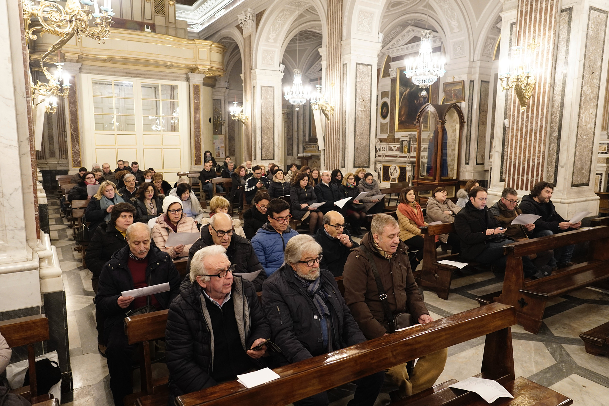 Tutta la Sacra Scrittura è un intreccio tra il “cammino di Dio” (Avvento) e il “cammino dell’uomo” (Esodo). Ogni “cammino”, anche quello che le Confraternite vivono in Quaresima e nelle Processioni della Settimana Santa, è uno strumento per rivelare nuovi orizzonti sia su se stessi che su Dio. Don Francesco ha concluso invitando tutti a essere “costantemente in camino” citando il cammino di Abramo, nostro Padre nella fede, quello di Israele, dalla schiavitù al servizio, il cammino di Maria, Madre di Dio e infine, quello più affascinante, dei discepoli e soprattutto di Pietro fatto, come il nostro, di alti e di bassi, ma infine culminato nell’affidamento totale al Signore.