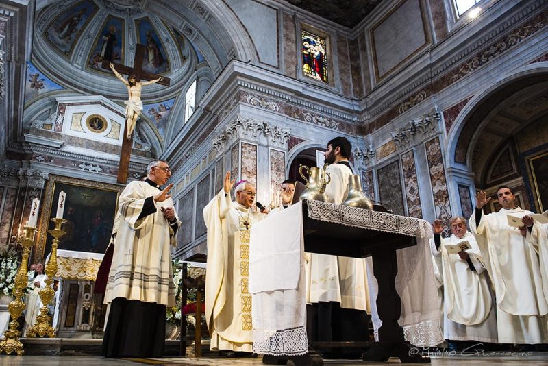 Un clima gioioso di festa ha accolto, nella cattedrale di Sorrento gremita come nelle grandi occasioni, la lunga processione dei sacerdoti, diaconi e seminaristi che si sono stretti intorno all’Arcivescovo, mons. Francesco Alfano, per la celebrazione stamattina della messa crismale, mentre le campane suonavano a festa. Alla celebrazione ha partecipato anche larcivescovo emerito, mons. Felice Cece. Ci ritroviamo tutti uniti attorno allo stesso altare, in questa cattedrale ha affermato mons. Alfano (clicca qui per il testo integrale dell’omelia) -, per manifestare anche visibilmente il mistero dellunità della Chiesa che quotidianamente cerchiamo di vivere e testimoniare. Il presule ha ricordato che litinerario quaresimale ha visto la nostra comunità diocesana impegnata in quel pellegrinaggio spirituale e pastorale che sta coinvolgendo una dopo laltra tutte le Unità pastorali nell’incontro con il Vescovo e che, iniziato già con le prime settimane del Tempo ordinario, si concluderà con la Pentecoste.
