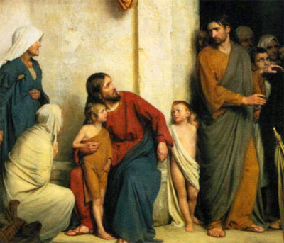 E, preso un bambino, lo pose in mezzo a loro e, abbracciandolo, disse loro: «Chi accoglie uno solo di questi bambini nel mio nome, accoglie me; e chi accoglie me, non accoglie me, ma colui che mi ha mandato».