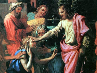 Gesù si fermò e disse: «Chiamatelo!». Chiamarono il cieco, dicendogli: «Coraggio! Àlzati, ti chiama!». Egli, gettato via il suo mantello, balzò in piedi e venne da Gesù.