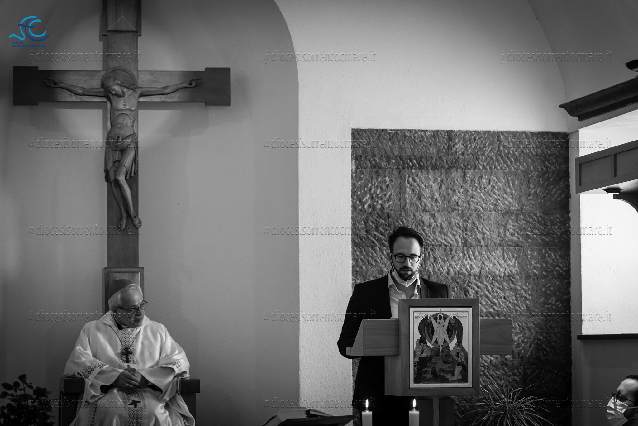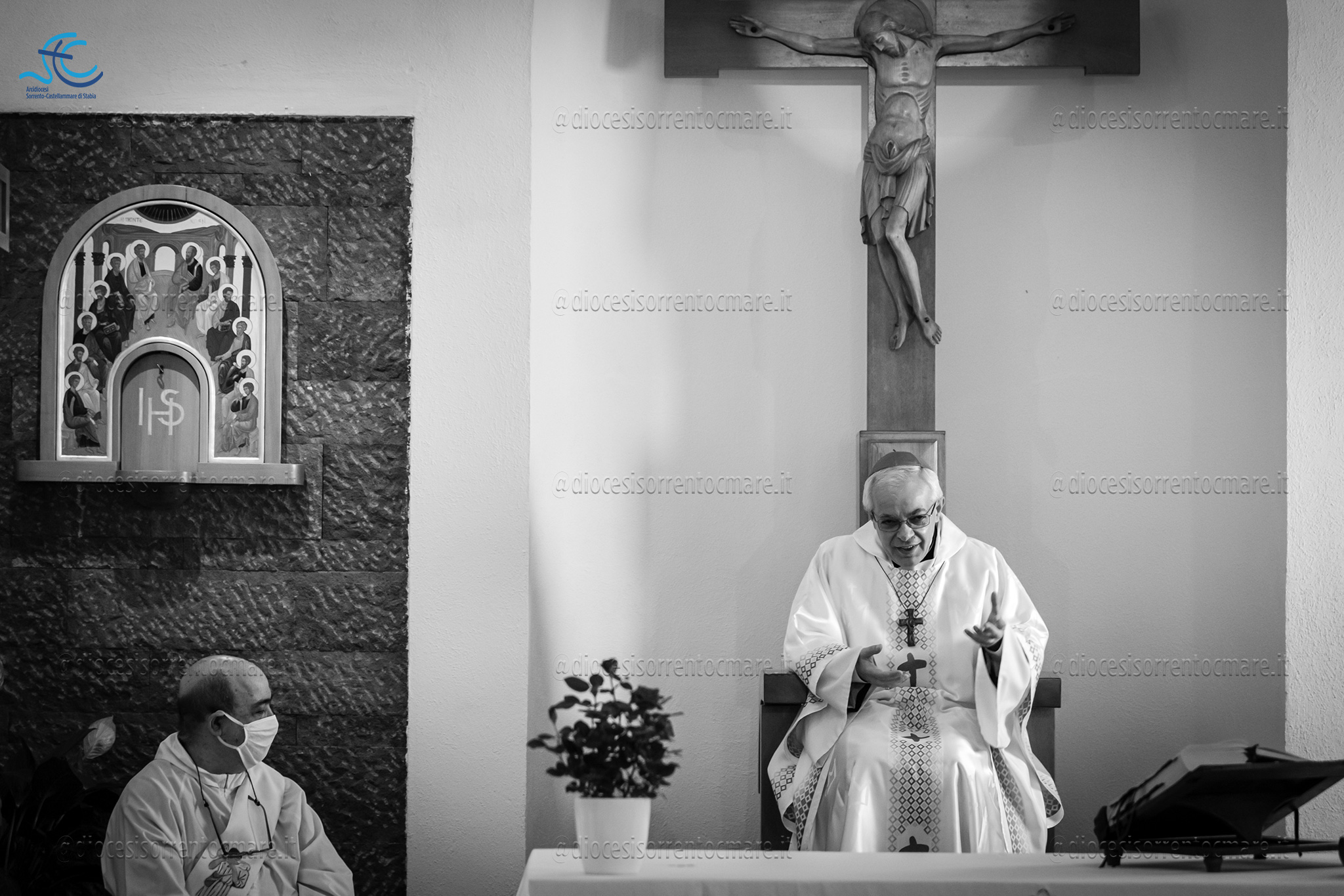 “Abbiamo scelto la cappella dell’ex seminario, in quanto accoglieva, in maniera più conforme, il numero ridotto dei partecipanti. Nel piccolo non dobbiamo sentirci un élite, siamo qui come chiesa diocesana. Se vogliamo rispondere alle sfide del nostro tempo, dobbiamo tornare a Nazareth come discepoli di Gesù, nella piccola sinagoga. Per ritornare a quei rapporti veri, autentici, radicati nella storia di un popolo” – continua il Vescovo”. (audio omelia Mons. Alfano)