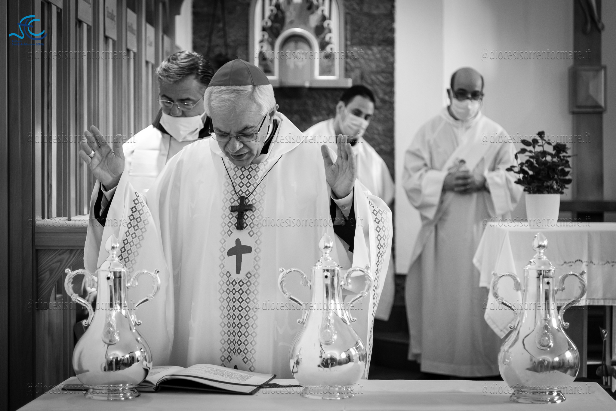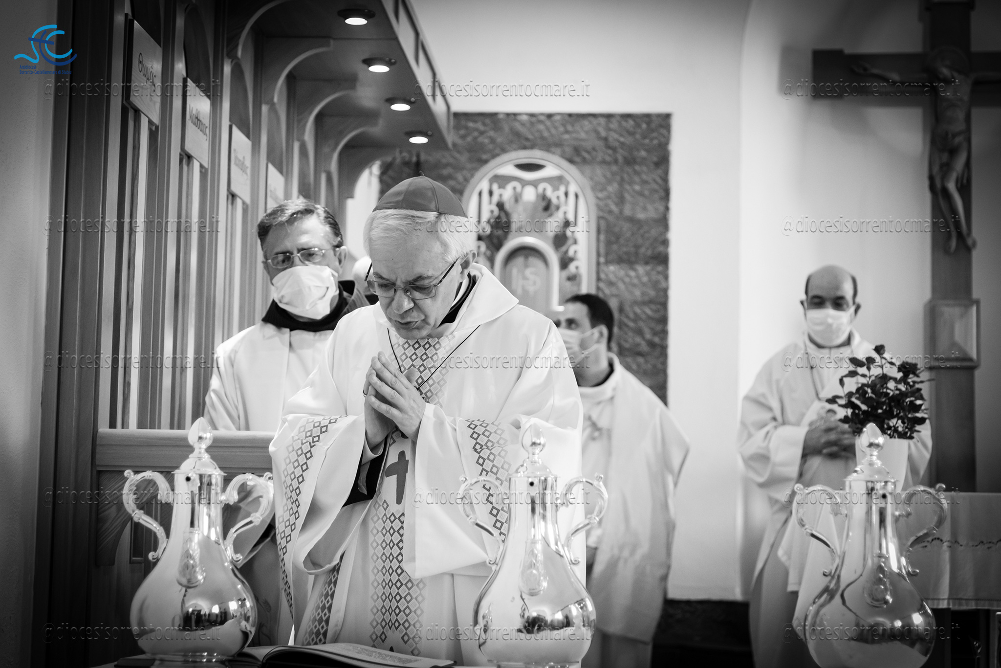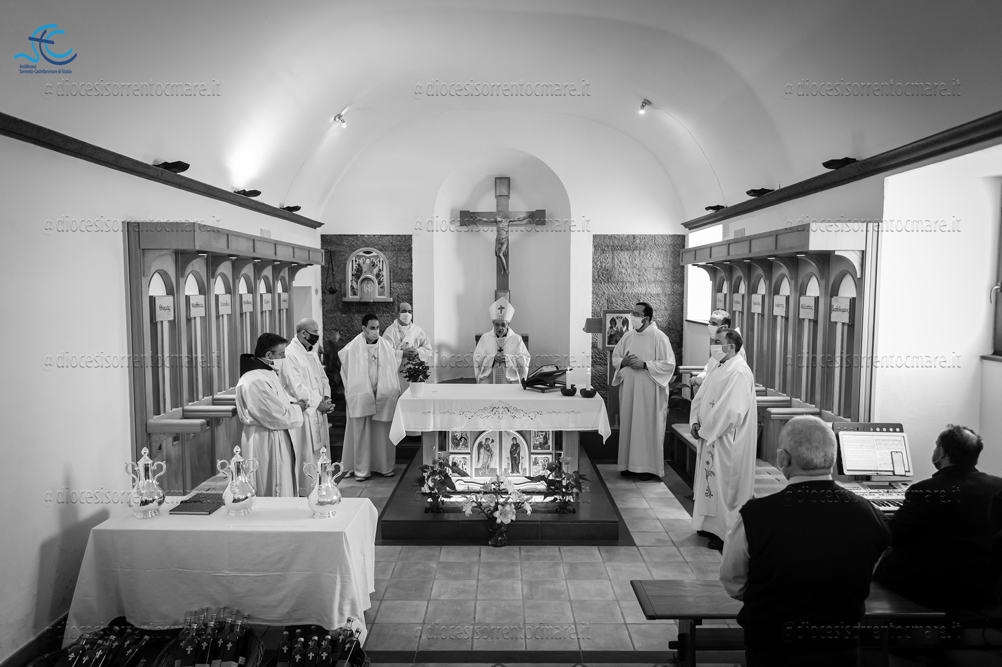 Si è svolta questa mattina ore 9:30, presso la cappella dell’ex seminario di Vico Equense, la Messa Crismale. Un momento liturgico particolarmente sentito nella Chiesa cattolica e dai fedeli, che non si è tenuto quest’anno – come di consueto e con il dispiacere di tanti – presso la Cattedrale dei Santi Filippo e Giacomo in Sorrento.