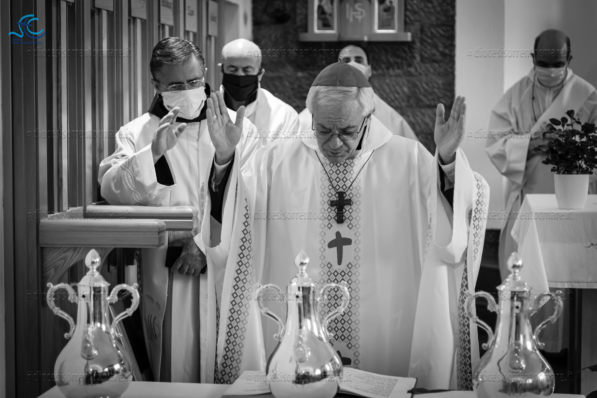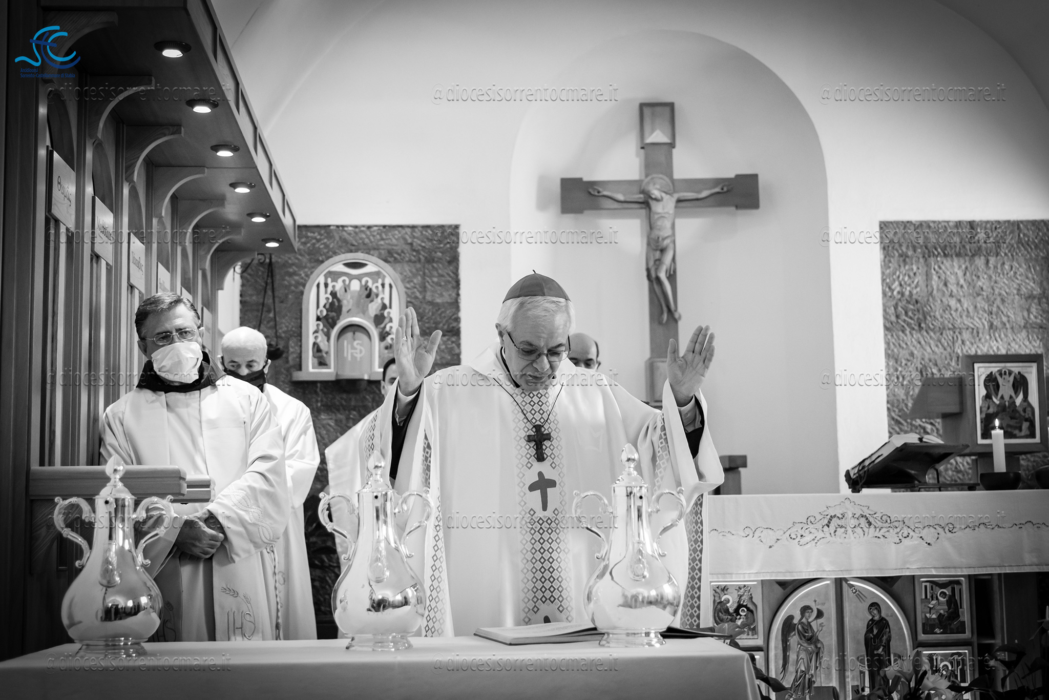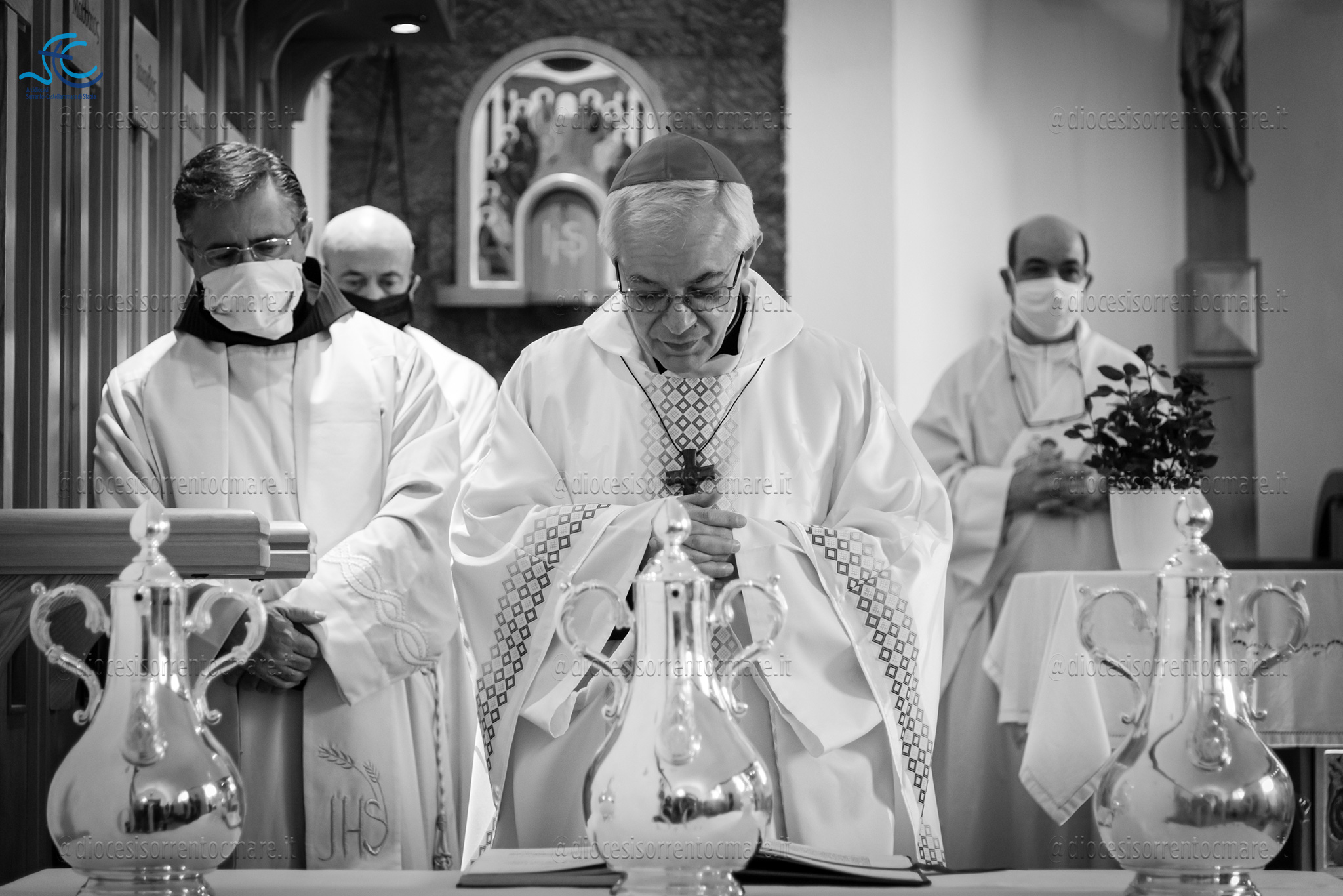 Si è svolta questa mattina ore 9:30, presso la cappella dell’ex seminario di Vico Equense, la Messa Crismale. Un momento liturgico particolarmente sentito nella Chiesa cattolica e dai fedeli, che non si è tenuto quest’anno – come di consueto e con il dispiacere di tanti – presso la Cattedrale dei Santi Filippo e Giacomo in Sorrento.