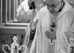 La suggestiva cappella, ha accolto meno di venti persone, tutti appartenenti al consiglio pastorale diocesano: preti e diaconi, religiosi e religiose, fedeli laici uomini e donne. Ognuno di loro era lì in rappresentanza di un’Unità Pastorale ed ha ricevuto, al termine della celebrazione, gli oli benedetti all’interno di tre piccole bottiglie di vetro, situate in delle ceste ai piedi di un tavolo dinanzi all’altare.