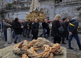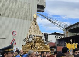 La sosta della processione di S. Catello nella Fincantieri è ogni anno attesa da tutti. Questo infatti è un luogo simbolo della nostra città. Qui il sudore e la fatica si trasformano in creazione. Qui il mare incontra il coraggio degli uomini. Questo è il cuore di Castellammare, un cuore che pulsa tra il rumore delle macchine e il silenzio delle attese, tra il peso delle incertezze e la forza della speranza.