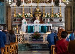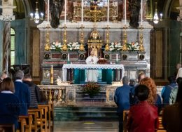 Si è celebrata questa mattina, la messa che conclude il mese dedicato alla Madonna. Un’atmosfera surreale abbracciava i presenti, tra posti contingentati, mascherine ai volti e distanze di sicurezza.