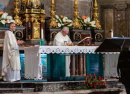 Si è celebrata questa mattina, la messa che conclude il mese dedicato alla Madonna. Un’atmosfera surreale abbracciava i presenti, tra posti contingentati, mascherine ai volti e distanze di sicurezza.