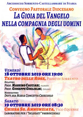 «I laboratori che impegneranno i delegati di tutte le comunità parrocchiali, previsti per il giorno 19, a Vico Equense sono stati pensati in modo da offrire, con l’aiuto di esperti, strumenti operativi concreti, nel tentativo di metterci efficacemente in ascolto di coloro che ci stanno accanto prendendo sul serio le loro attese, condividendo gioie e dolori, facendo nostre le delusioni e le speranze che portano nel cuore. Vorremmo in conclusione operare quella conversione pastorale che ci consente di non avvicinarci più agli altri partendo da noi, e ci rende capaci di camminare insieme sulla via della fraternità attraversando i sentieri della solidarietà, della giustizia, della pace».