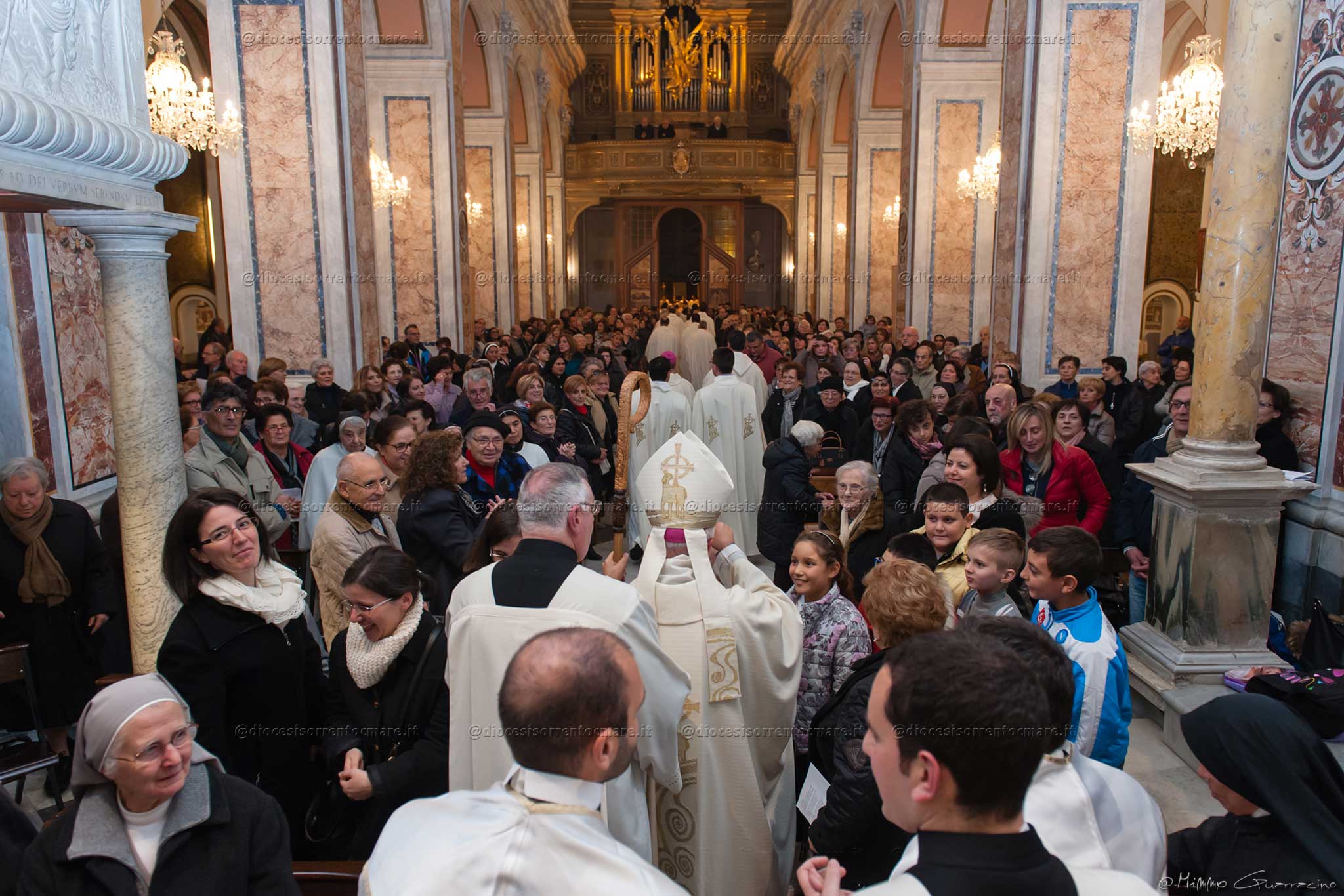All’inizio della messa è stato ricordato che domenica 30 novembre inizierà l’Anno della Vita consacrata, indetto da Papa Francesco. Per questo sull’altare brillavano cinque lampade, segno della presenza spirituale delle cinque comunità monastiche presenti in diocesi: le Monache Benedettine del Monastero San Paolo a Sant’Agata sui due Golfi, le Monache Carmelitane Scalze del Monastero Santa Teresa a Massa Lubrense, le Monache Domenicane del Monastero Santa Maria delle Grazie a Sorrento, le Adoratrici Perpetue del Santissimo Sacramento di Castellammare di Stabia, le Monache Domenicane del Monastero Santissimo Rosario a Lettere. A queste cinque lampade si sono aggiunte le lampade, portate all’altare dai rappresentanti degli Istituti di Vita Consacrata e Società di Vita Apostolica.