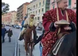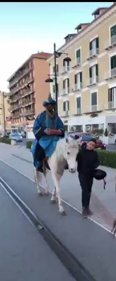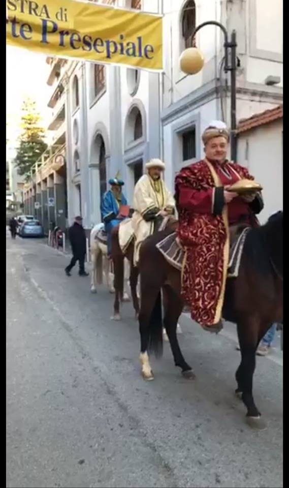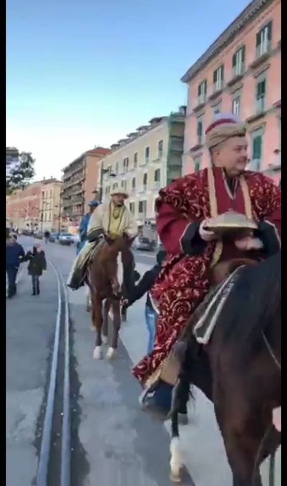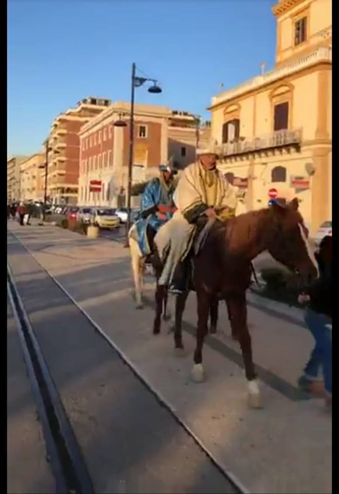 La cerimonia del viaggio dei Re Magi è iniziata nello spazio adiacente la Parrocchia del Carmine e da lì hanno cavalcato i loro destrieri passando per la Villa Comunale che in quell’occasione ha offerto un sole caldo e inaspettato.