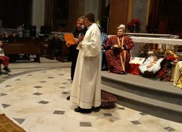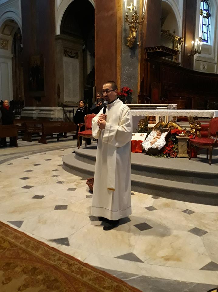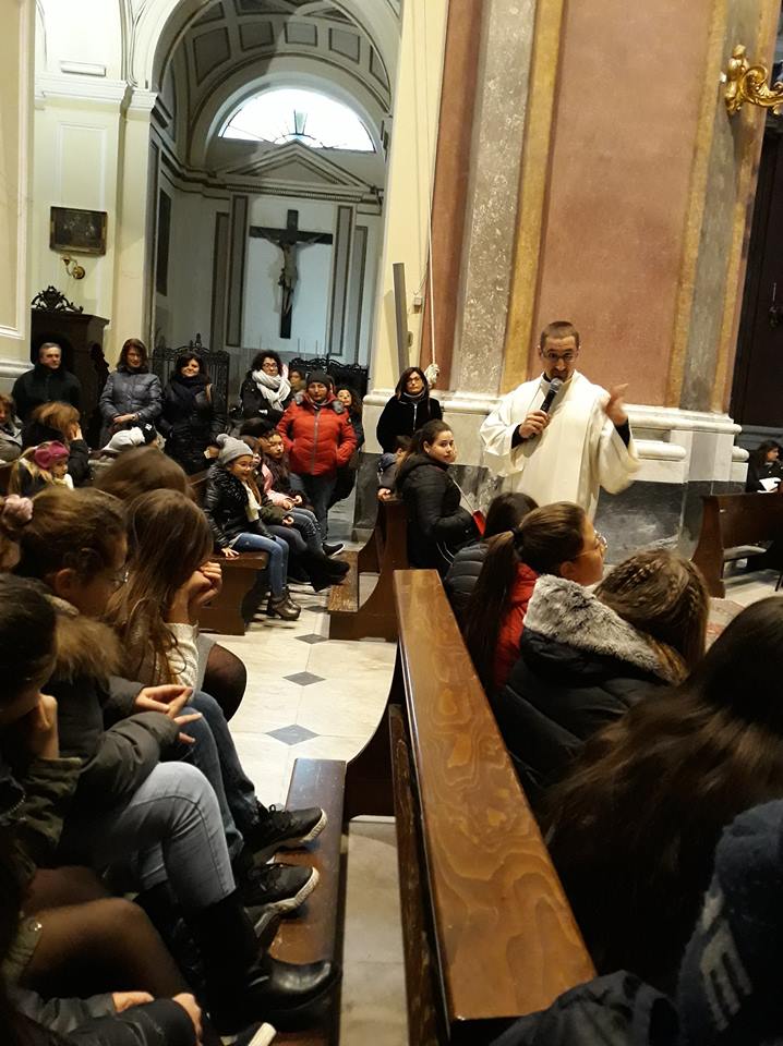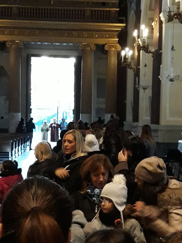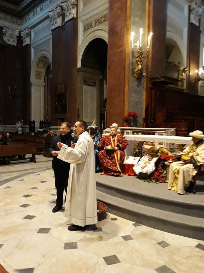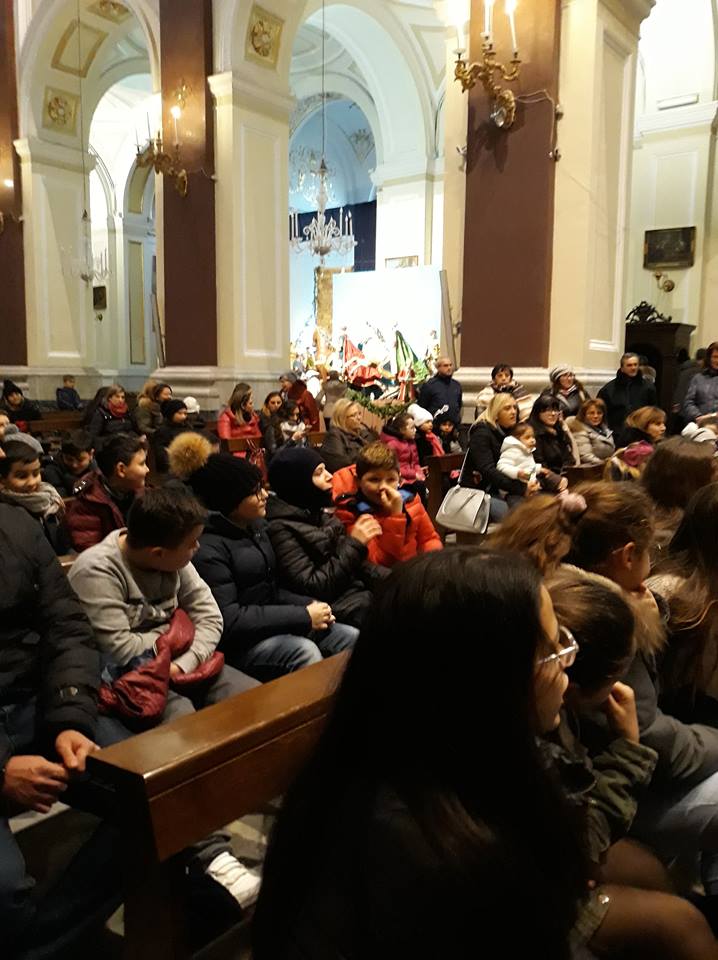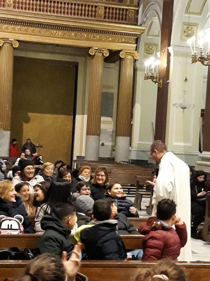 In Parrocchia c’erano due cantori Raffaele e Michele che hanno aiutato i bambini ad accogliere l’arrivo con il canto “I bambini di Betlemme” e Guglielmo Pignataro che parlava loro intrattenendoli.