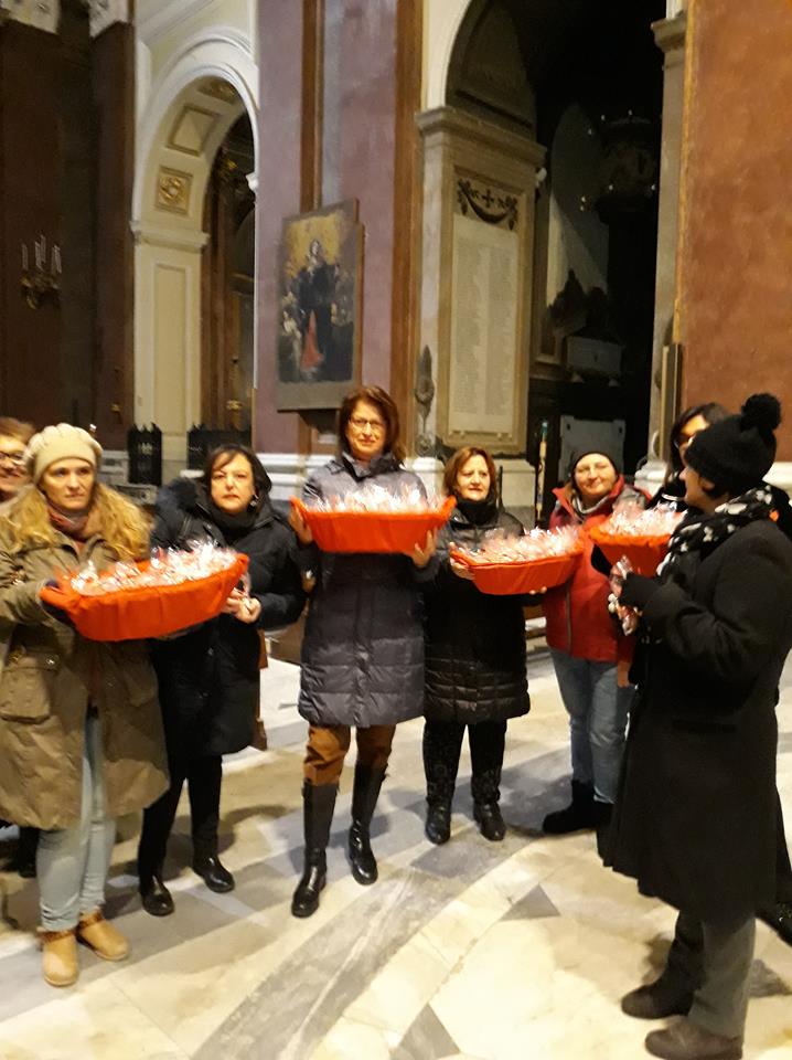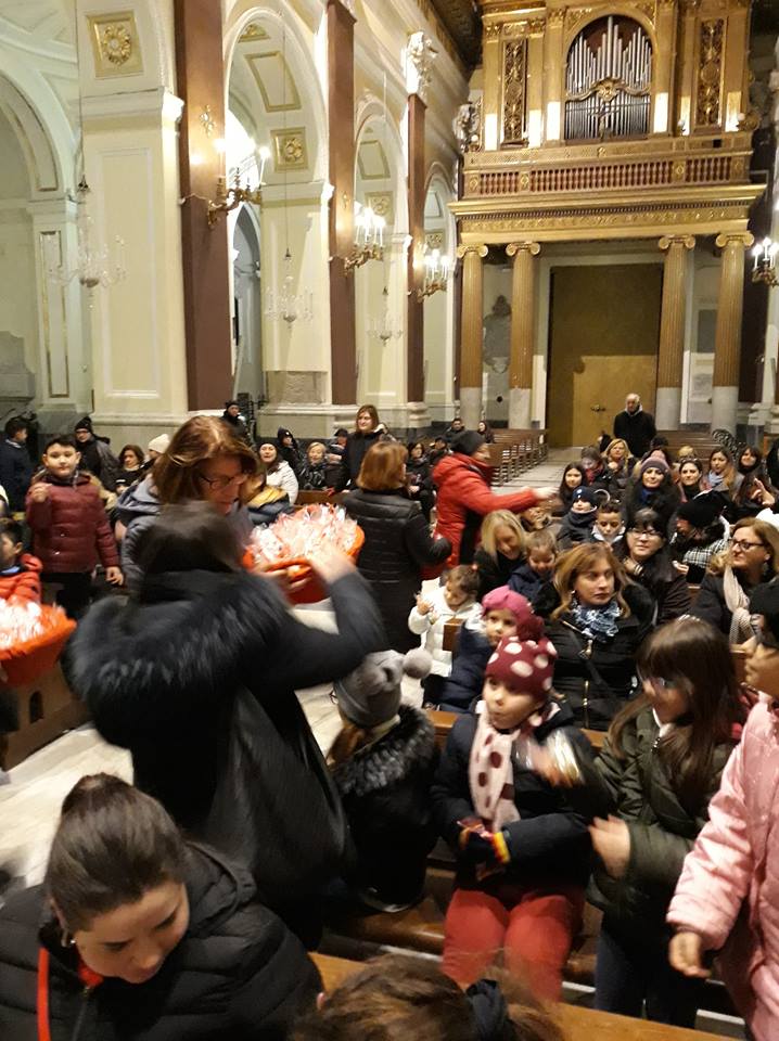Prima della fine della celebrazione le catechiste hanno distribuito i sacchetti con le caramelle e la cioccolata per tutti i bambini presenti.