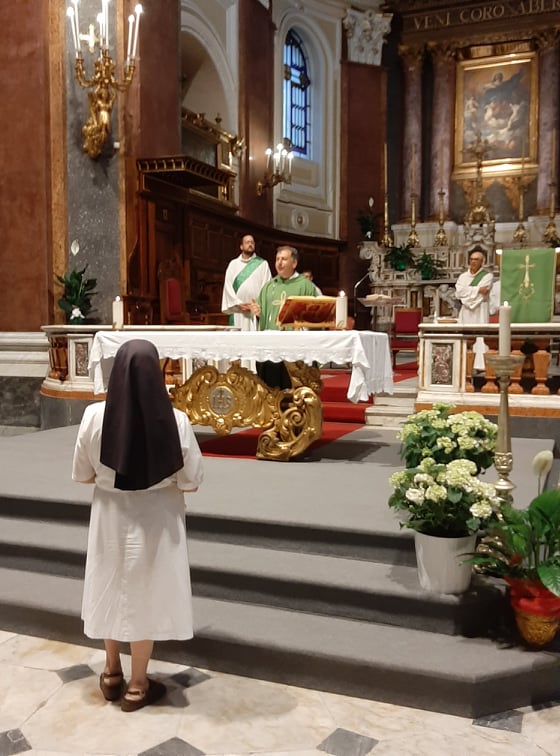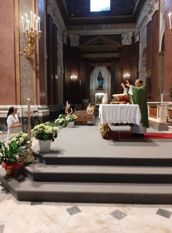 Mercoledì 12 agosto nella mia parrocchia “S. Maria Assunta e San Catello” abbiamo festeggiato una nostra cara sorella del convento delle Francescane Stimmatine che in questa data ha festeggiato i 60 anni di vita consacrata: Sr. Giovanna Gentile. Tutto è nato da una proposta di una nostra catechista Emilia Della Monica che ci ha avvisati dell’anniversario e in pochi giorni dal parroco agli altri operatori pastorali della parrocchia, ci siamo organizzati per una celebrazione eucaristica a sorpresa dedicata a lei. Le Cattepax (catechiste Cattedrale e Pace) hanno pensato a confezionare i confetti, ad avvisare tutti invitandoli a realizzare videomessaggi di auguri per lei e il nostro diacono Luigi Russo che ha provveduto al montaggio, ed ha mostrato subito dopo la S. Messa. Il nostro parroco don Antonino ha presieduto insieme a Luigi e al diacono Maurizio Longobardi, la celebrazione Eucaristica queste le sue parole: