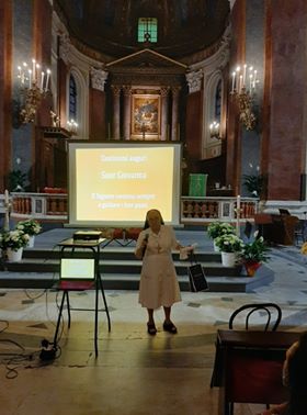 Oggi la nostra grande comunità è in festa perché orgogliosa di avere una religiosa come sr. Giovanna Gentile che durante la sua vita consacrata ha donato e continuerà a donare tutti i suoi doni perché ha messo il Signore al centro della sua vita e insieme a lei ringraziamo tutte le consacrate per quanto bene hanno realizzato nella loro missione. Perciò oggi eleviamo insieme una preghiera di ringraziamento a Dio per sr. Giovanna che oggi festeggia i 60 anni di vita consacrata le auguriamo di rimanere sempre giovane nello spirito e di non  fermarsi mai  davanti al male .