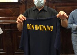 Prima dei saluti finali il presidente Langella e lo staff dirigenziale, sono saliti verso l’altare maggiore, hanno consegnato ad entrambi le nuove magliette della squadra firmate da tutti i giocatori e dal mister Novellino e dopo i ringraziamenti al Vescovo e a Don Antonino per la bella accoglienza, il presidente ha concluso con un bellissimo e applauditissimo: ”Forza Juve Stabia, forza Gialloblù”.