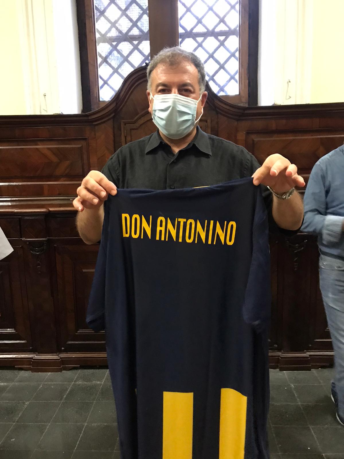 Prima dei saluti finali il presidente Langella e lo staff dirigenziale, sono saliti verso l’altare maggiore, hanno consegnato ad entrambi le nuove magliette della squadra firmate da tutti i giocatori e dal mister Novellino e dopo i ringraziamenti al Vescovo e a Don Antonino per la bella accoglienza, il presidente ha concluso con un bellissimo e applauditissimo: ”Forza Juve Stabia, forza Gialloblù”.