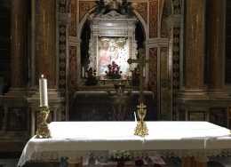 Dopo una breve pausa per far visita alla Sala Offerte e al Museo del Santuario i Sodalizi si sono riuniti in preghiera sotto la guida di Don Ciro, e dopo una breve processione hanno raggiunto il Santuario della Madonna dell’Arco ai piedi del meraviglioso Altare in marmo policromo dove si venera la prodigiosa immagine. Qui Padre Michele Spinali ha dato il benvenuto a nome dei Padri Domenicani è ha guidato la preghiera dedicata alla Madonna con la benedizione finale. Luigi Esposito, guida del Santuario, ha intrattenuto i presenti fornendo tutte le notizie relative all’inizio del culto della Madonna dell’Arco, alla storia del Santuario e alla tradizione dei “fuienti” o “battenti” del lunedì di Pasqua.