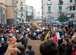 “Bande” di ragazzi hanno popolato le strade di Castellammare con un’intensa Marcia della Pace da Piazza Fontana Grande (l’acqua della Madonna) alla Cassarmonica, intonando canti di pace e improvvisando balli, cori e motti.