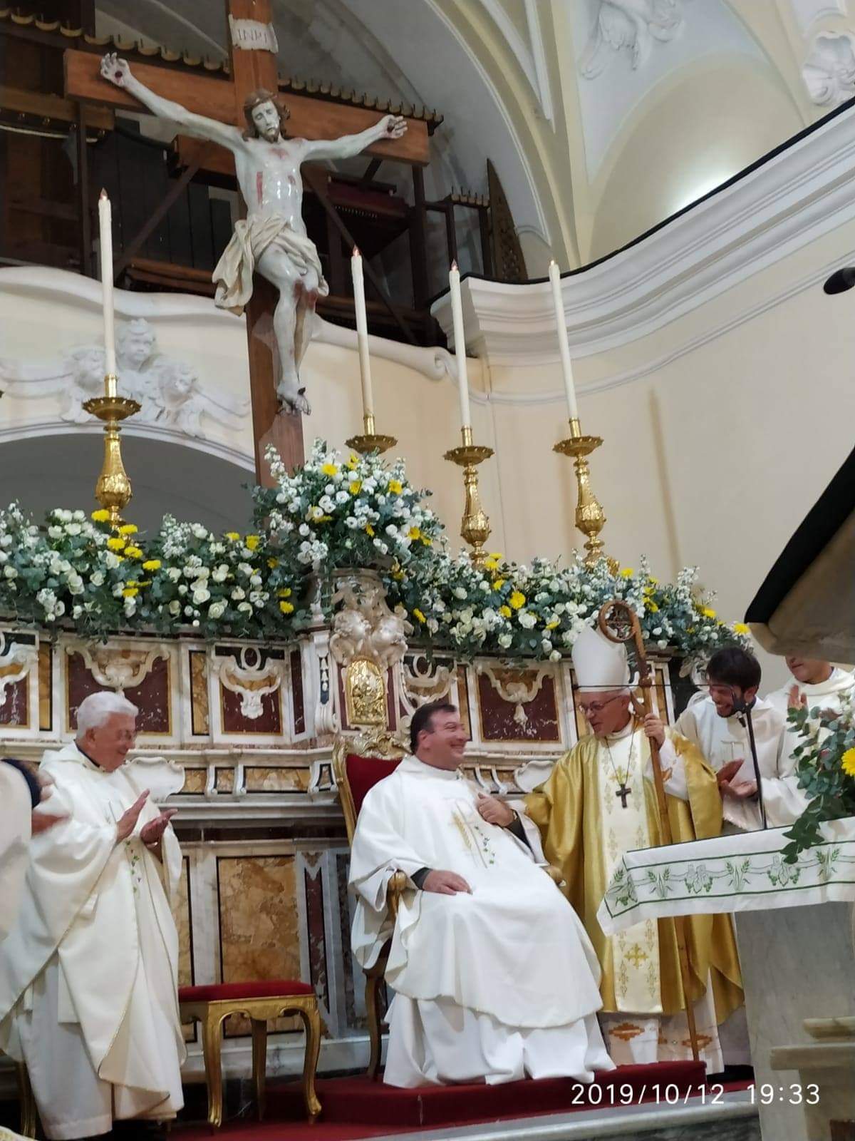 ringraziare il Signore per il dono del nuovo parroco e per la presenza, insieme a lui, dell’accolito Massimo Iaccarino. Come da rituale, nel corso della santa messa il nuovo parroco ha rinnovato le promesse fatte il giorno della sua ordinazione ed ha ufficialmente ricevuto il nuovo incarico dal Vescovo. Il clima festante e gioioso si è concluso in sala parrocchiale con un brindisi di augurio. Preghiamo il Signore affinché guidi il nuovo parroco nel suo ministero e lo renda segno visibile della tenerezza del Padre.