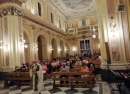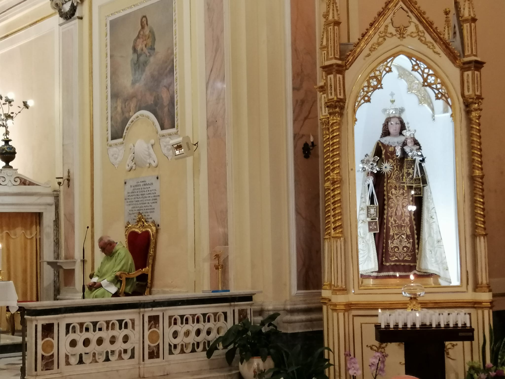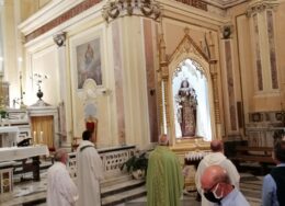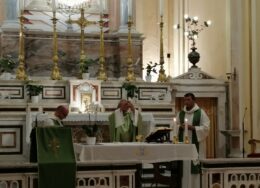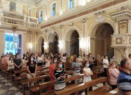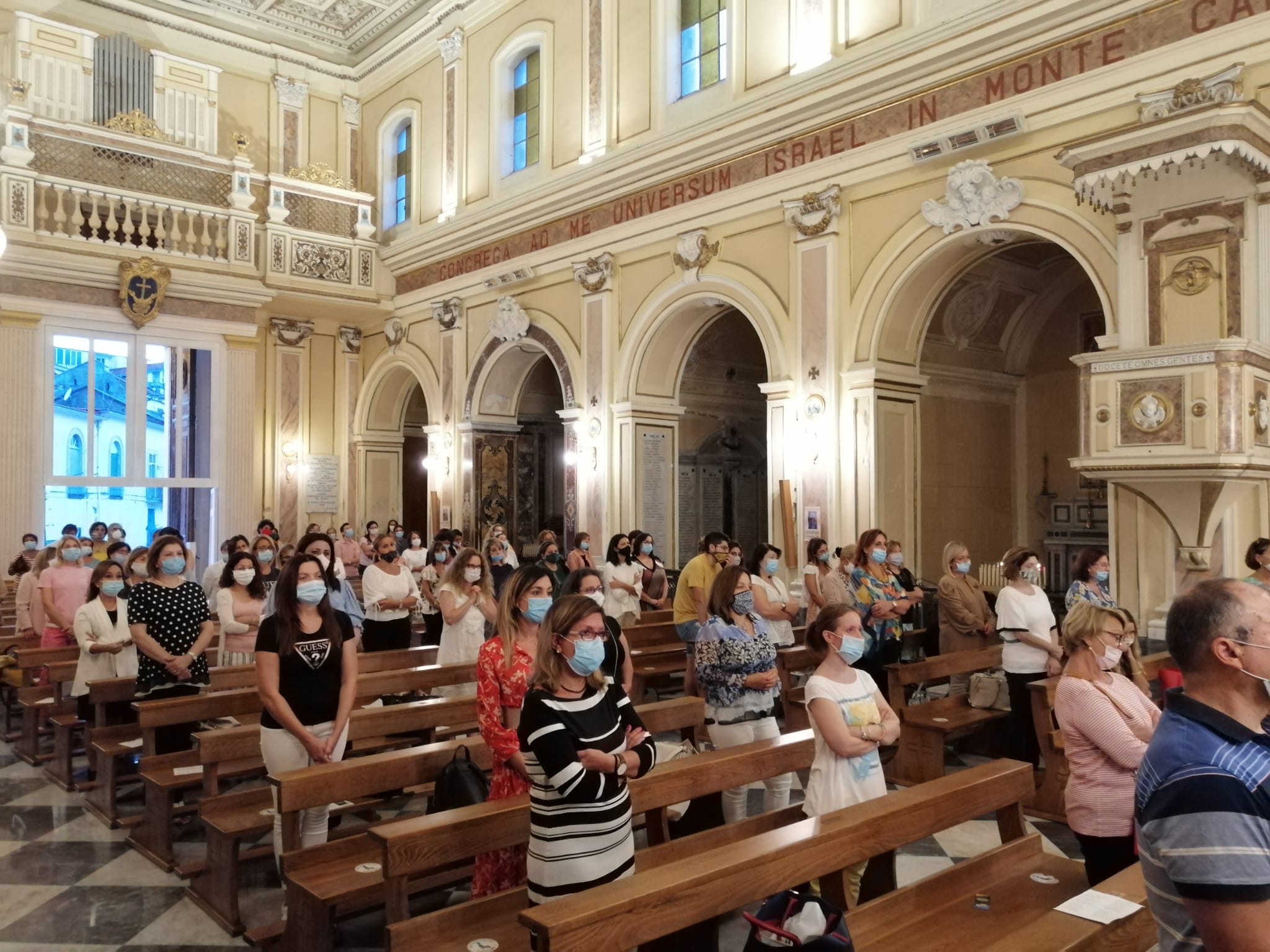 La celebrazione è stata organizzata dai sacerdoti dell’Unità Pastorale di Gragnano proprio in virtù dell’inizio di un anno scolastico particolare a causa del protrarsi degli effetti dell’emergenza Coronavirus. Si è pensato agli insegnanti e a al più arduo compito che quest’anno li attende sia sul piano pratico delle restrizioni sia su quello psicologico delle preoccupazioni. Infondendo loro il coraggio di superare l’ansia dell’imprevedibile e l’ossessione dei protocolli, agli insegnanti è stato rivolto l’appello di custodire il futuro, quel futuro che gli viene consegnato nelle mani quotidianamente, quel futuro che ha il volto e i tratti di una scolaretta o di un ragazzotto. «Il futuro è qualcuno che cresce accanto a me, il futuro è qualcuno con il quale condivido un tratto della vita, il futuro è questo esercizio concreto e continuo nel dare e nel ricevere, l’un con l’altro e l’un per l’altro, in questo esercizio noi costruiamo un mondo possibile. Come è vero che nella scuola si costruisce il mondo possibile….» continua con dolce fermezza don Aniello mentre risuonano le armoniose note delle campane della chiesa madre di Gragnano.