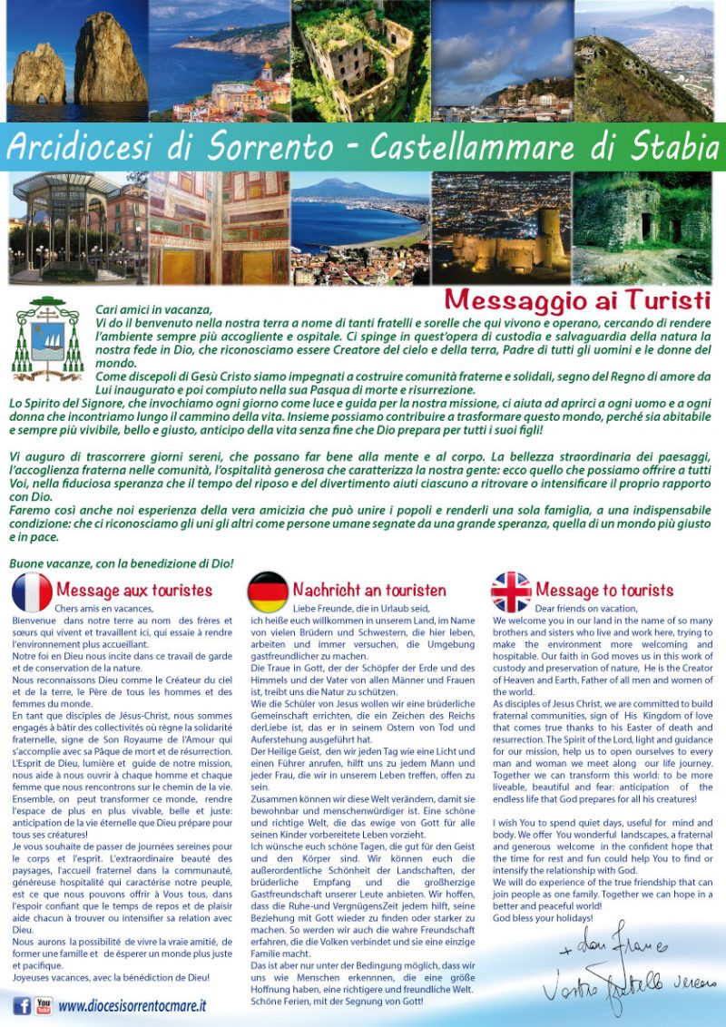 Riparte la messa in lingua inglese, prevista nei mesi di luglio e agosto, nella splendida cornice della Chiesa di San Francesco a Sorrento. L’eucarestia è in programma tutte le domeniche alle ore 7:00, previste anche le confessioni trenta minuti prima della celebrazione. La messa è frutto della collaborazione tra il Servizio della Pastorale del Turismo e dei Frati Francescani.