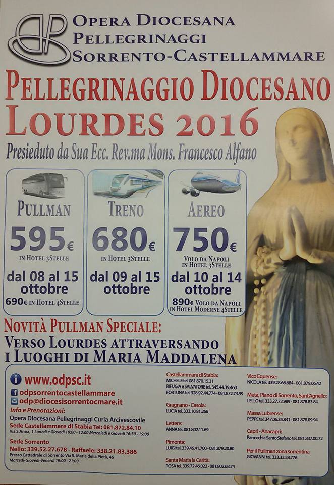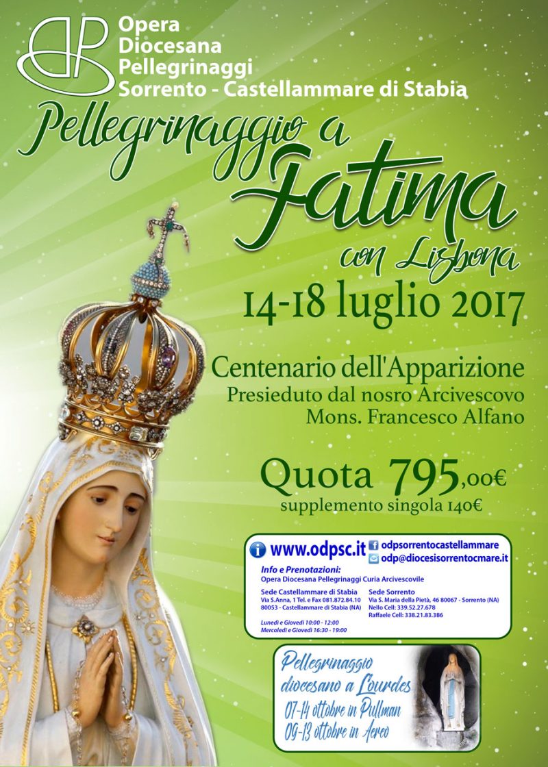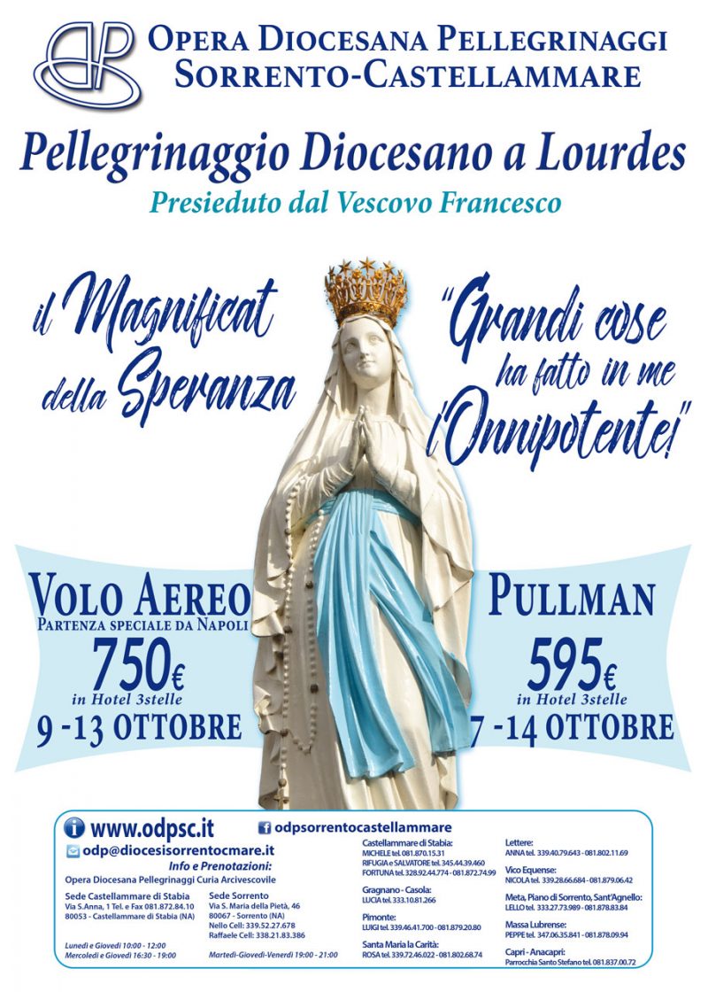 Stesso posto, stessa ora. Ritorna come ogni anno l’appuntamento che raduna centinaia di pellegrini di tutta la diocesi, prontissimi a vivere il Pellegrinaggio Diocesano Pompei 2018. A partire dalle ore 22.30 di venerdì 25, il punto di partenza sarà dalla Parrocchia di Santa Lucia di Sorrento per poi iniziare il cammino tra preghiere e canti, animando con gioia e spirito di fede il percorso verso … Continue reading Pellegrinaggio Diocesano Pompei 2018: in cammino per la pace