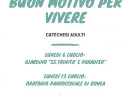 Non mancheranno nemmeno i collaudati appuntamenti estivi per gli adulti, come ormai da qualche anno condivisi con le comunità parrocchiali di Bonea e Massaquano; dopo un po’ di tempo ci si ritrova anche per dare una lettura sapiente al tempo che abbiamo attraversato e per poter sottolineare qualche “grazia” che il Signore ha operato con noi anche nella prova. L’appuntamento per loro sarà il lunedì, anche qui godendo degli spazi parrocchiali e del gusto di ritrovarsi come comunità sorelle.
