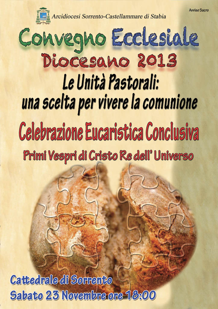 Sabato 23 novembre, alle ore 18, nella Cattedrale si celebrerà la fase conclusiva del Convegno ecclesiale diocesano, che ha avuto al centro della riflessione le Unità pastorali. Presiederà la celebrazione eucaristica il nostro arcivescovo, mons. Francesco Alfano, che, nell’occasione, consegnerà le linee pastorali.