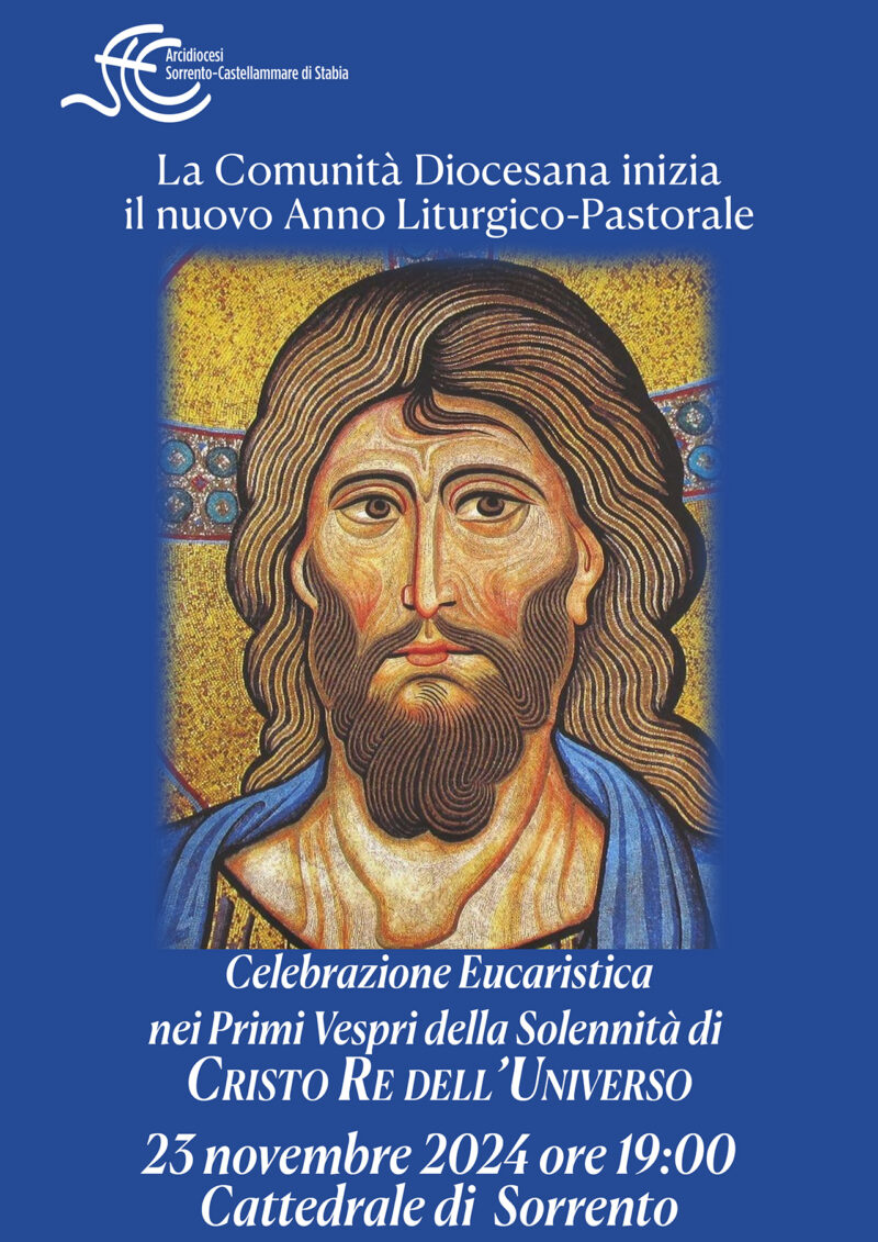 Sabato 23 novembre 2024 alle ore 19:00, nei Primi Vespri della Solennità di Cristo Re dell’Universo, il nostro Arcivescovo presiederà la Concelebrazione Eucaristica nella Chiesa Cattedrale di Sorrento per dare inizio al nuovo anno Liturgico – Pastorale.