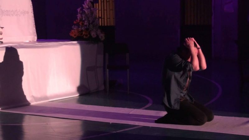 Momento successivo e, diremmo, centrale dellAdorazione è stato il bellissimo passo di danza eseguito da un viandante, che ha messo a disposizione il suo talento per mostrarci come si possa pregare non solo nei modi canonici, classici, a cui siamo di solito abituati, ma anche in maniera alternativa, usando un linguaggio – la danza appunto – che piace soprattutto ai giovani. Del resto la pubblicizzazione dellevento Chi ama chiama ha voluto puntare proprio su questo: il linguaggio giovanile. I viandanti della Comunità Tabor hanno infatti preso in prestito le parole proprio dai giovani, il loro vocabolario, i loro codici, i loro gesti più comuni per poter comunicare con loro e convincerli ad intraprendere questa avventura: flash mob, video, selfie, ma soprattutto una caratteristica decisamente giovanile, ovvero la gioia
