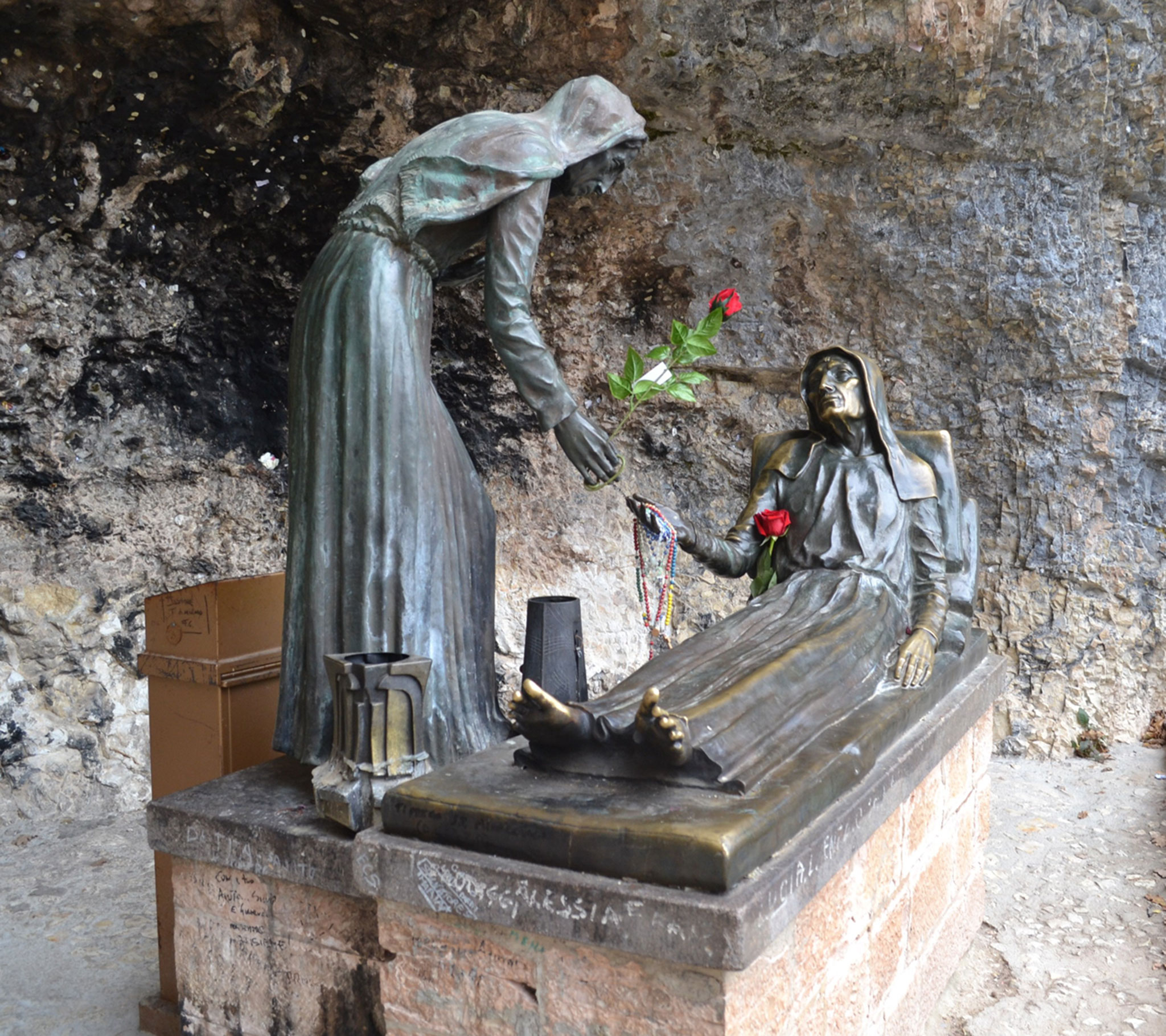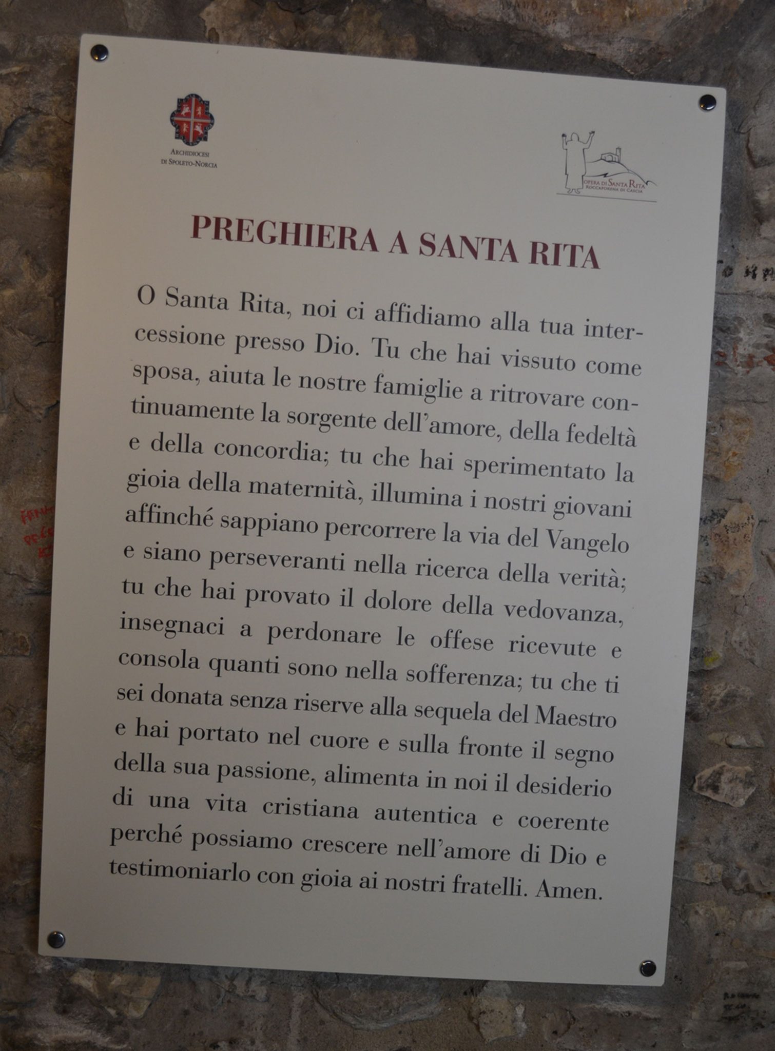 La discesa è stata più veloce e a Roccaporena abbiamo visitato la casa natale di Rita, la chiesa di San Montano dove lei si è sposata e perfino il Lazzaretto dove trovavano ospitalità i forestieri o venivano ricoverati i malati in gravi condizioni, in tempi di pestilenze.
